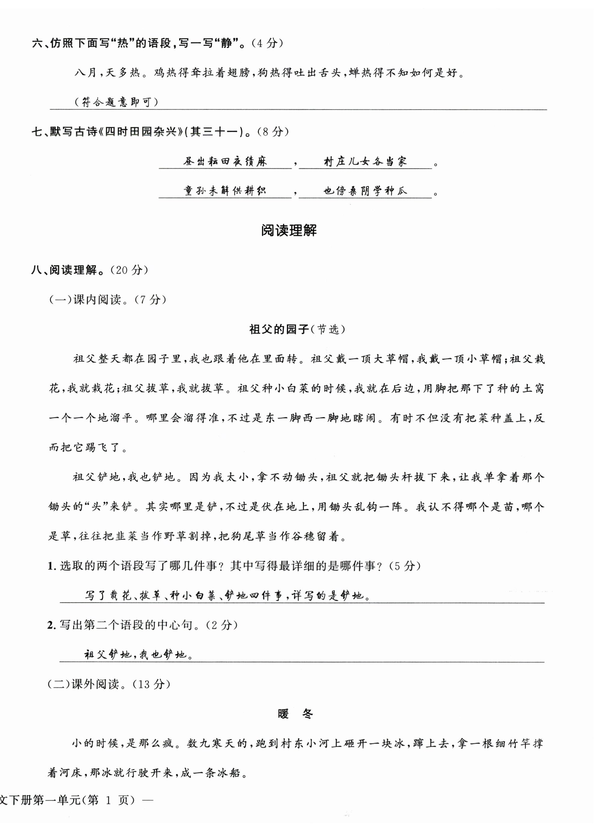 注:目前有些书本章节名称可能整理的还不是很完善,但都是按照顺序排列的,请同学们按照顺序仔细查找。练习册 2024年课堂巩固练习五年级语文下册人教版 答案主要是用来给同学们做完题方便对答案用的,请勿直接抄袭。