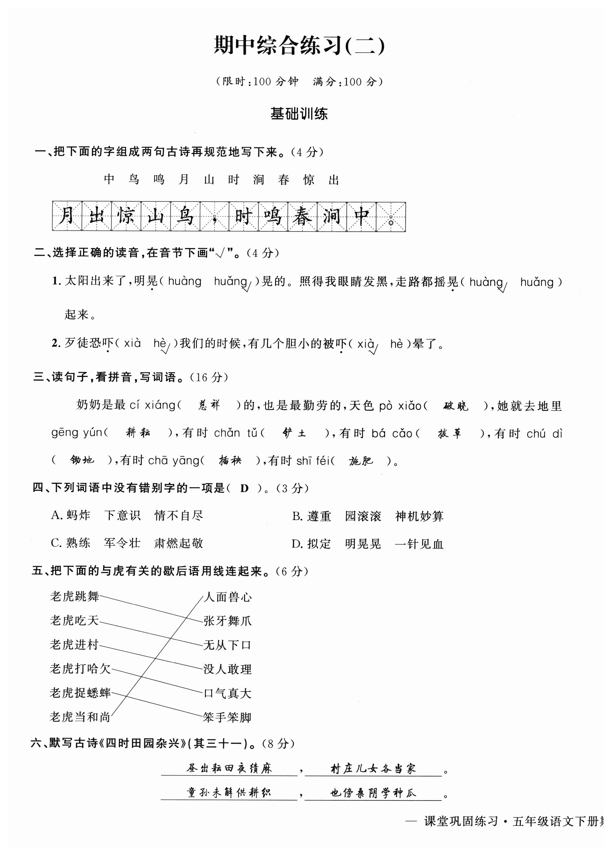 注:目前有些书本章节名称可能整理的还不是很完善,但都是按照顺序排列的,请同学们按照顺序仔细查找。练习册 2024年课堂巩固练习五年级语文下册人教版 答案主要是用来给同学们做完题方便对答案用的,请勿直接抄袭。