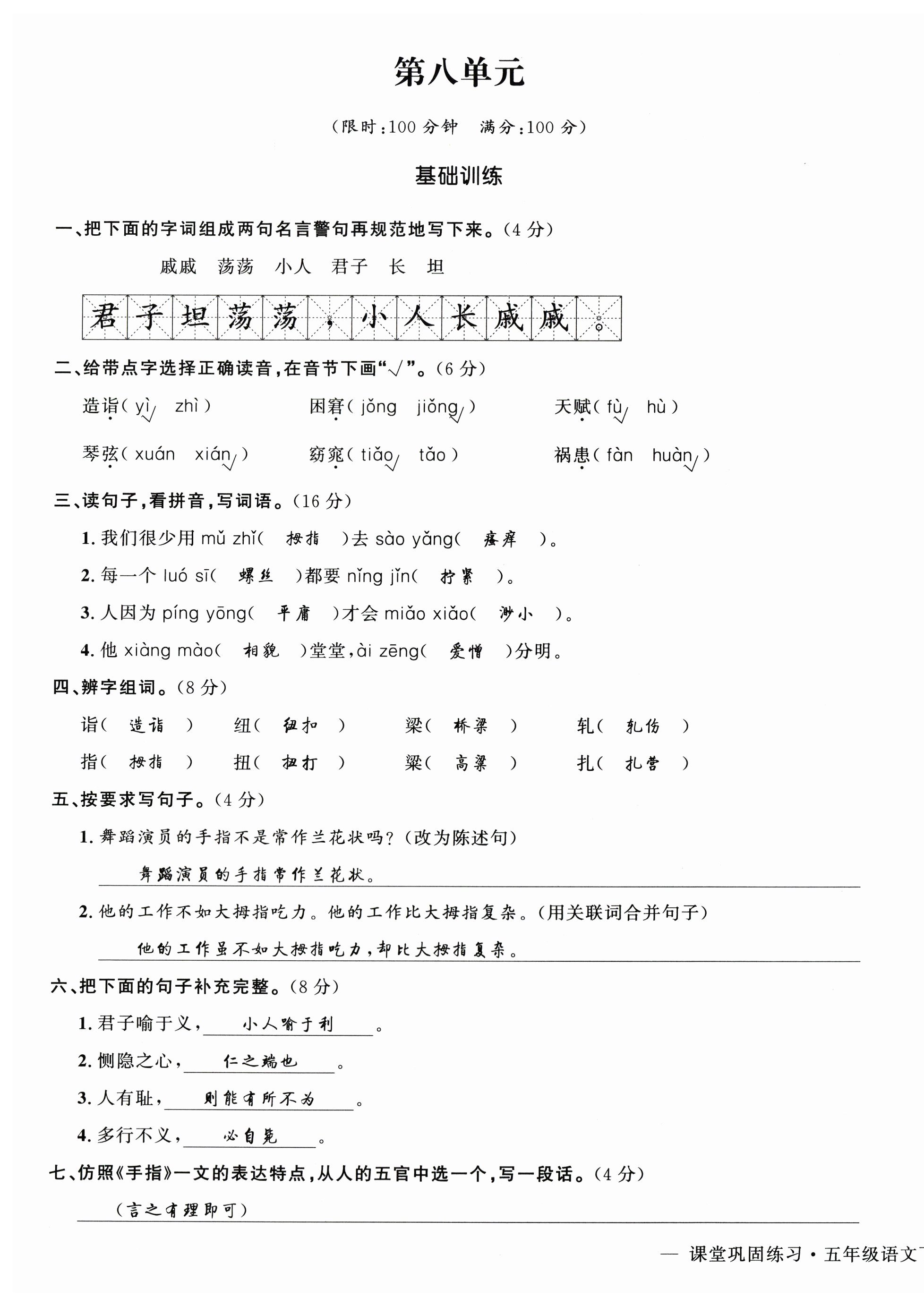注:目前有些书本章节名称可能整理的还不是很完善,但都是按照顺序排列的,请同学们按照顺序仔细查找。练习册 2024年课堂巩固练习五年级语文下册人教版 答案主要是用来给同学们做完题方便对答案用的,请勿直接抄袭。