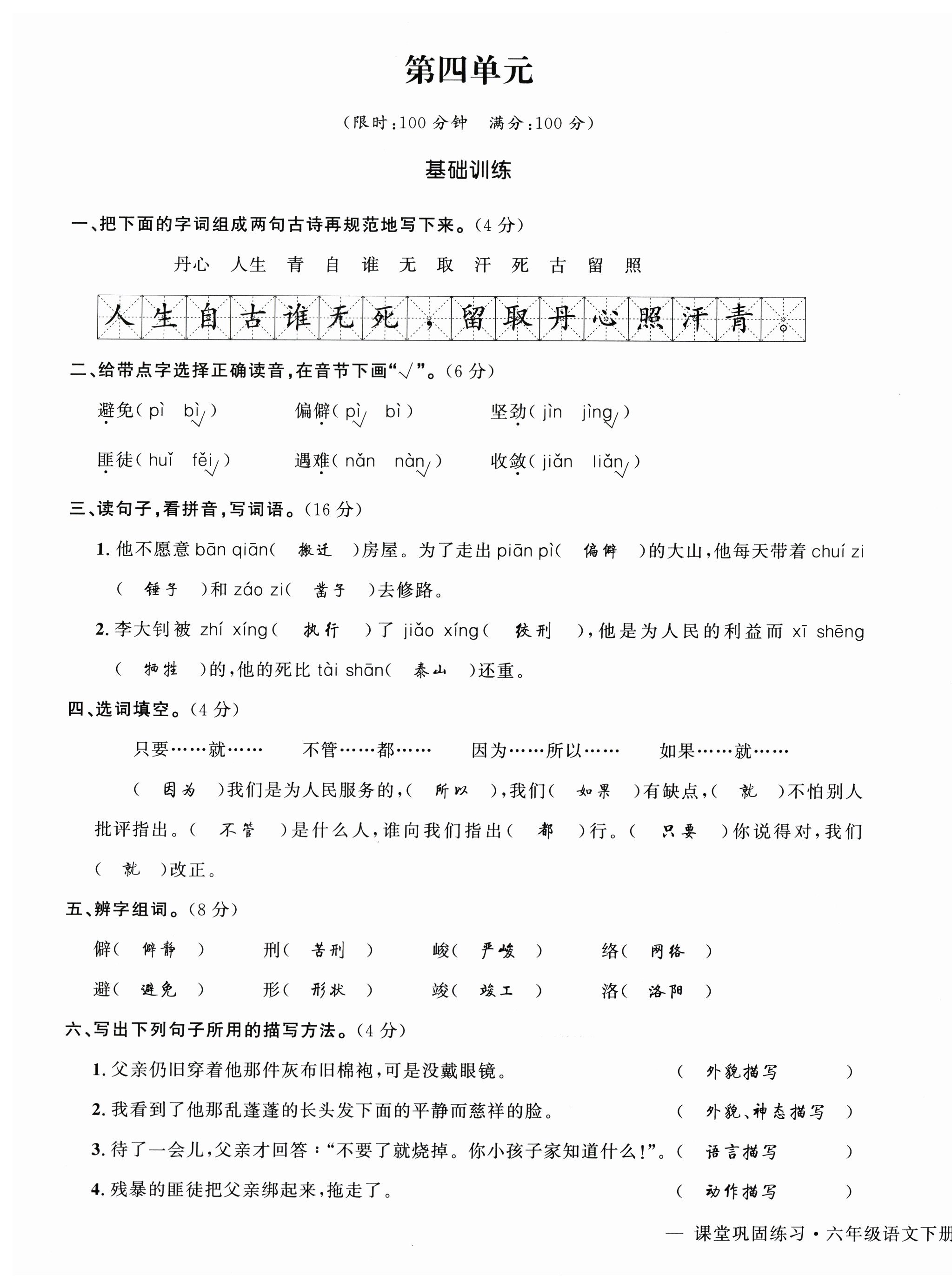 注:目前有些书本章节名称可能整理的还不是很完善,但都是按照顺序排列的,请同学们按照顺序仔细查找。练习册 2024年课堂巩固练习六年级语文下册人教版 答案主要是用来给同学们做完题方便对答案用的,请勿直接抄袭。