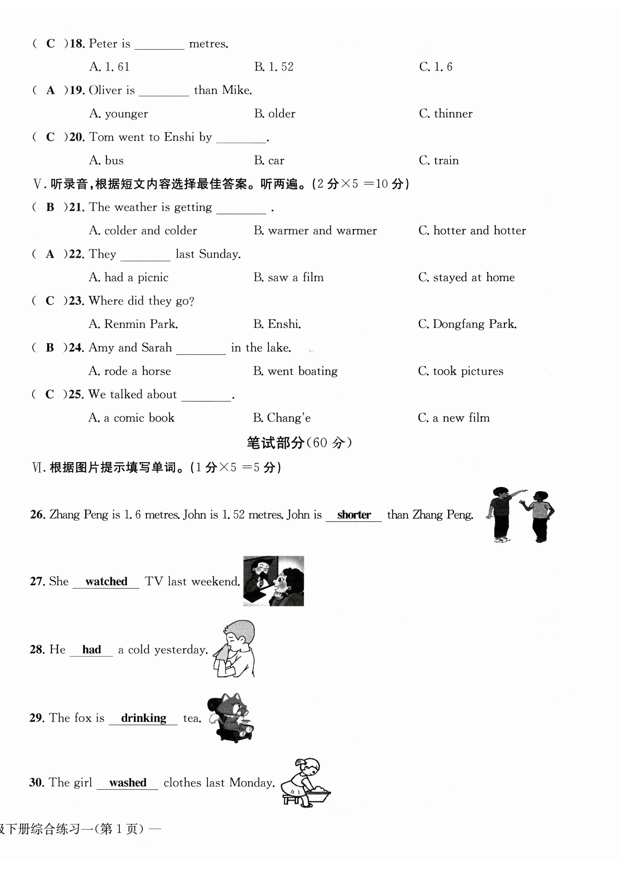 注:目前有些书本章节名称可能整理的还不是很完善,但都是按照顺序排列的,请同学们按照顺序仔细查找。练习册 2024年课堂巩固练习六年级英语下册人教版 答案主要是用来给同学们做完题方便对答案用的,请勿直接抄袭。