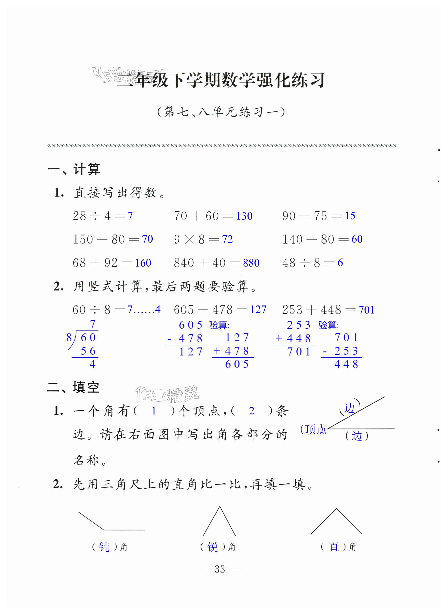 注:目前有些书本章节名称可能整理的还不是很完善,但都是按照顺序排列的,请同学们按照顺序仔细查找。练习册 2024年练习与测试含活页试卷二年级数学下册苏教版 答案主要是用来给同学们做完题方便对答案用的,请勿直接抄袭。