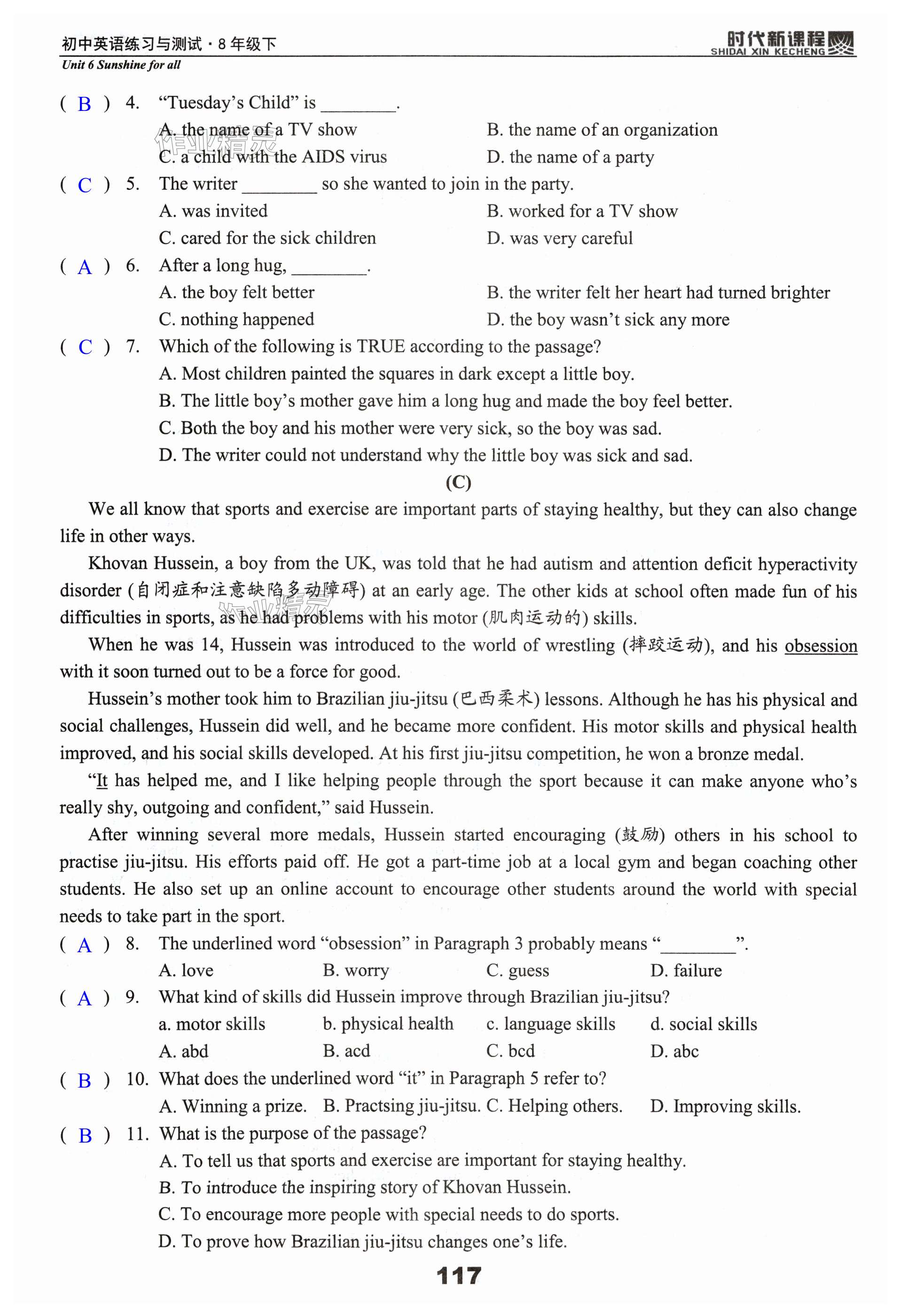 注:目前有些书本章节名称可能整理的还不是很完善,但都是按照顺序排列的,请同学们按照顺序仔细查找。练习册 2024年时代新课程八年级英语下册译林版 答案主要是用来给同学们做完题方便对答案用的,请勿直接抄袭。