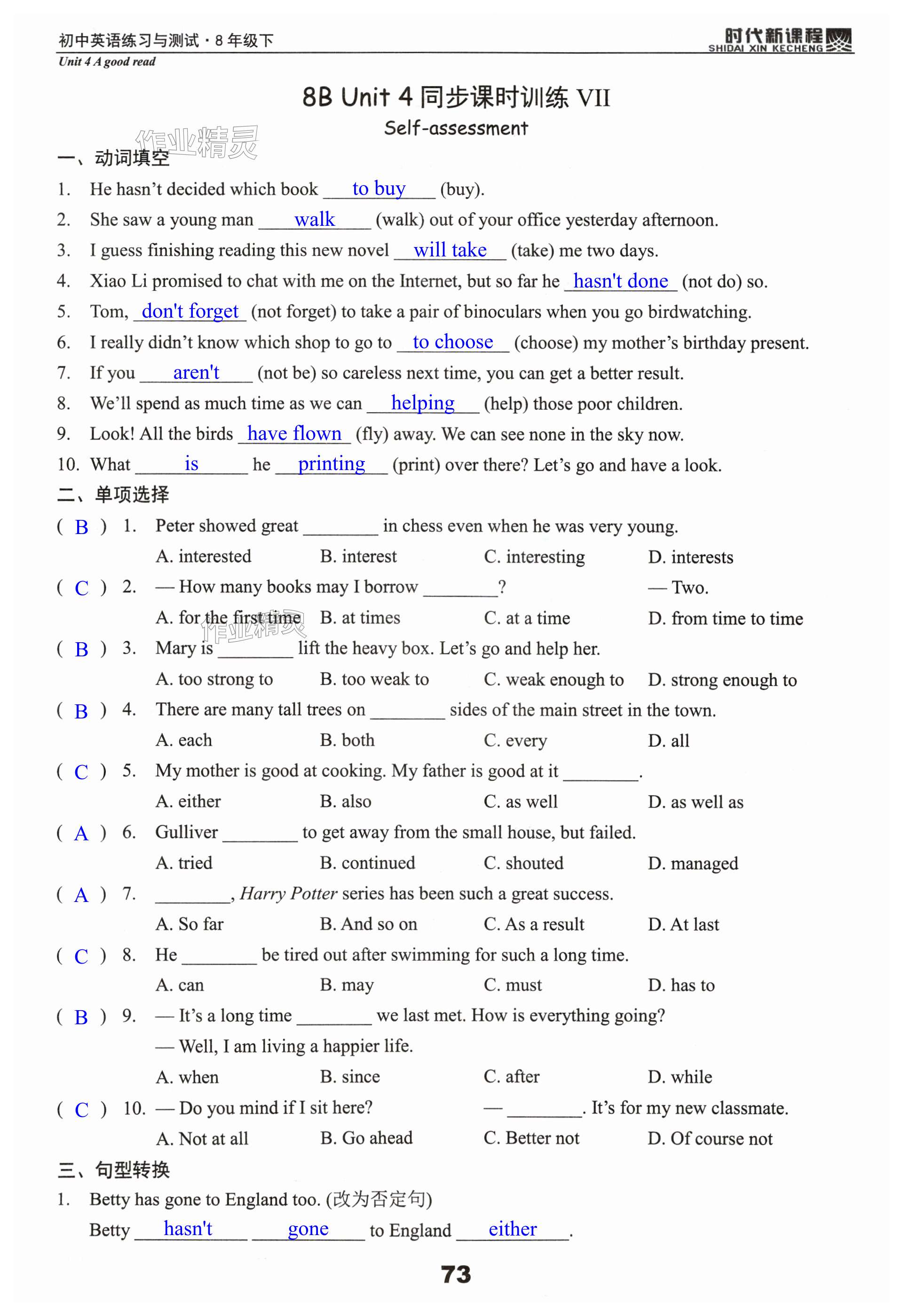 注:目前有些书本章节名称可能整理的还不是很完善,但都是按照顺序排列的,请同学们按照顺序仔细查找。练习册 2024年时代新课程八年级英语下册译林版 答案主要是用来给同学们做完题方便对答案用的,请勿直接抄袭。