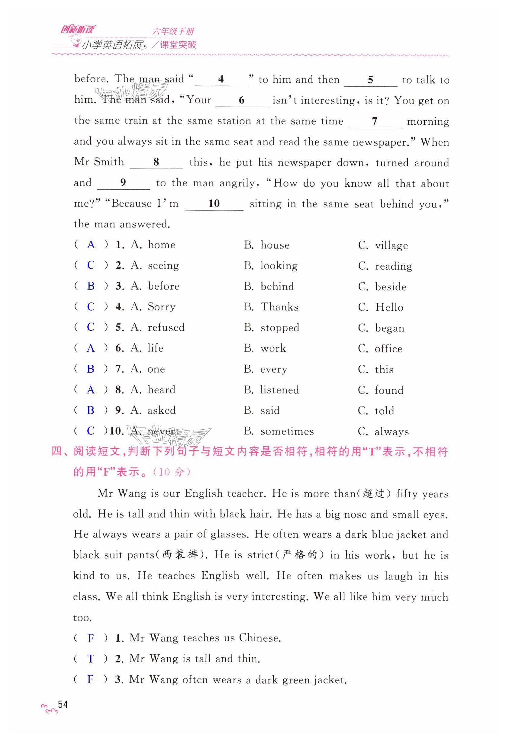 注:目前有些书本章节名称可能整理的还不是很完善,但都是按照顺序排列的,请同学们按照顺序仔细查找。练习册 2024年小学拓展课堂突破六年级英语下册译林版 答案主要是用来给同学们做完题方便对答案用的,请勿直接抄袭。
