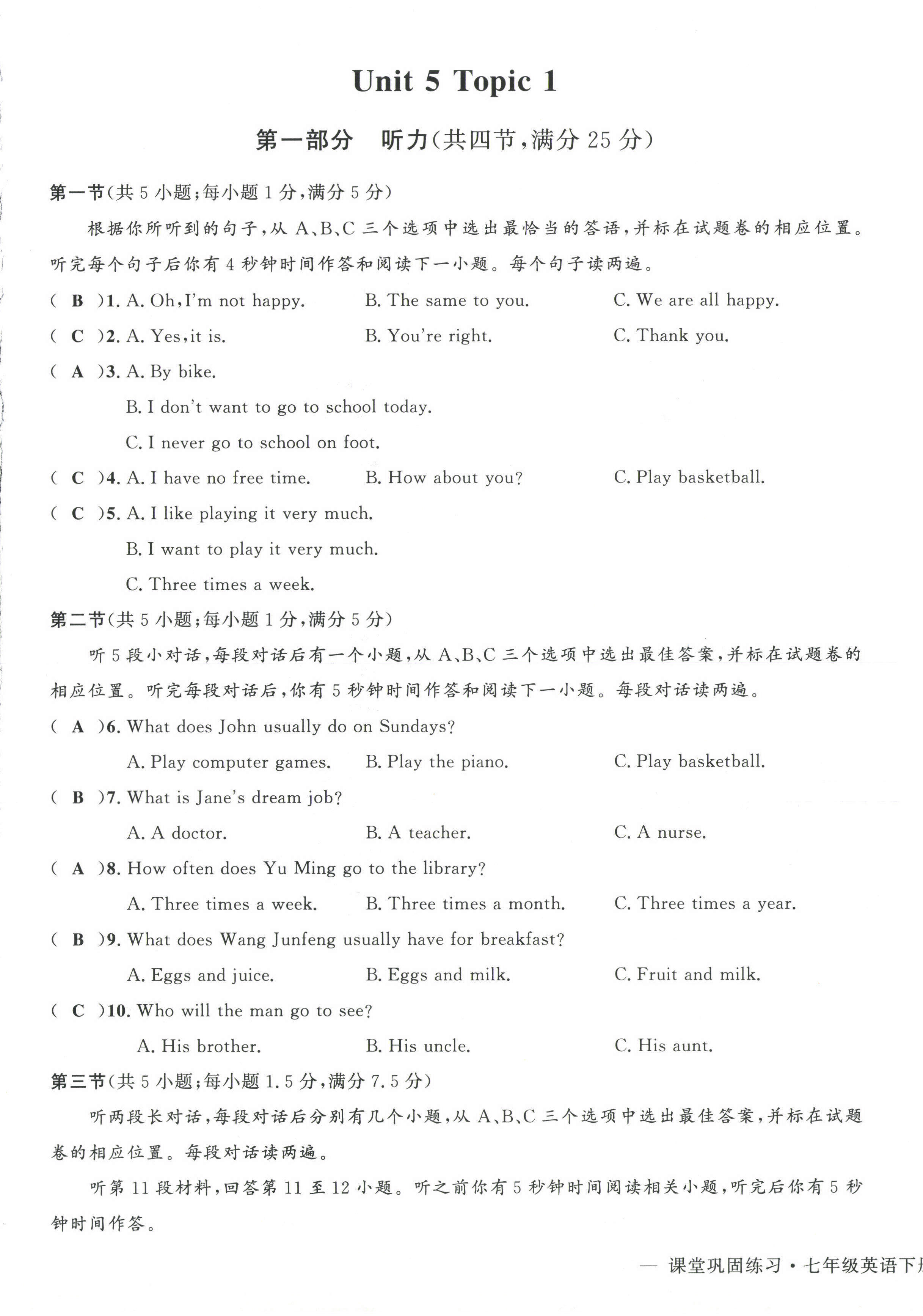 注:目前有些书本章节名称可能整理的还不是很完善,但都是按照顺序排列的,请同学们按照顺序仔细查找。练习册2024年课堂巩固练习七年级英语下册仁爱版答案主要是用来给同学们做完题方便对答案用的,请勿直接抄袭。
