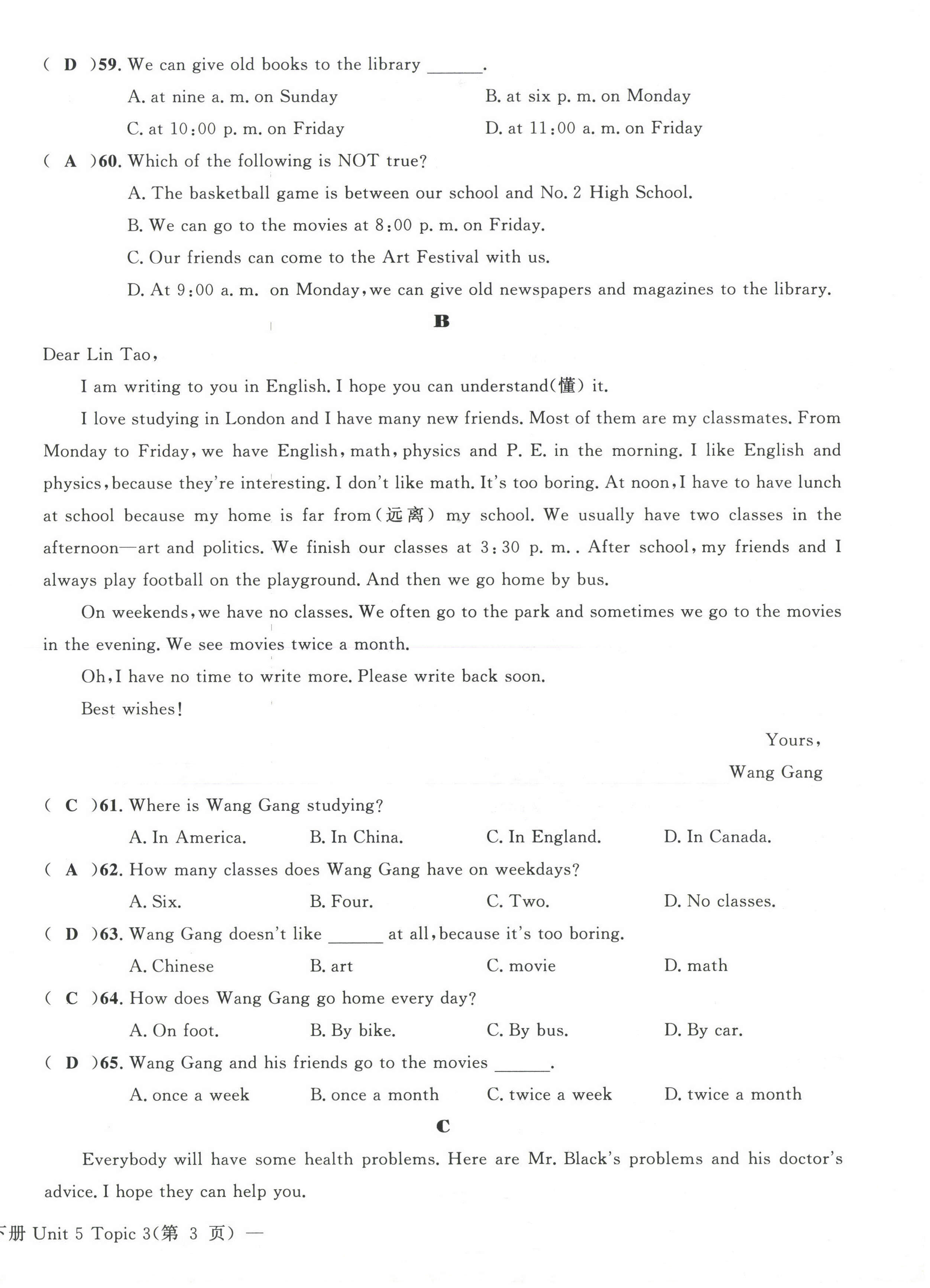 注:目前有些书本章节名称可能整理的还不是很完善,但都是按照顺序排列的,请同学们按照顺序仔细查找。练习册 2024年课堂巩固练习七年级英语下册仁爱版 答案主要是用来给同学们做完题方便对答案用的,请勿直接抄袭。