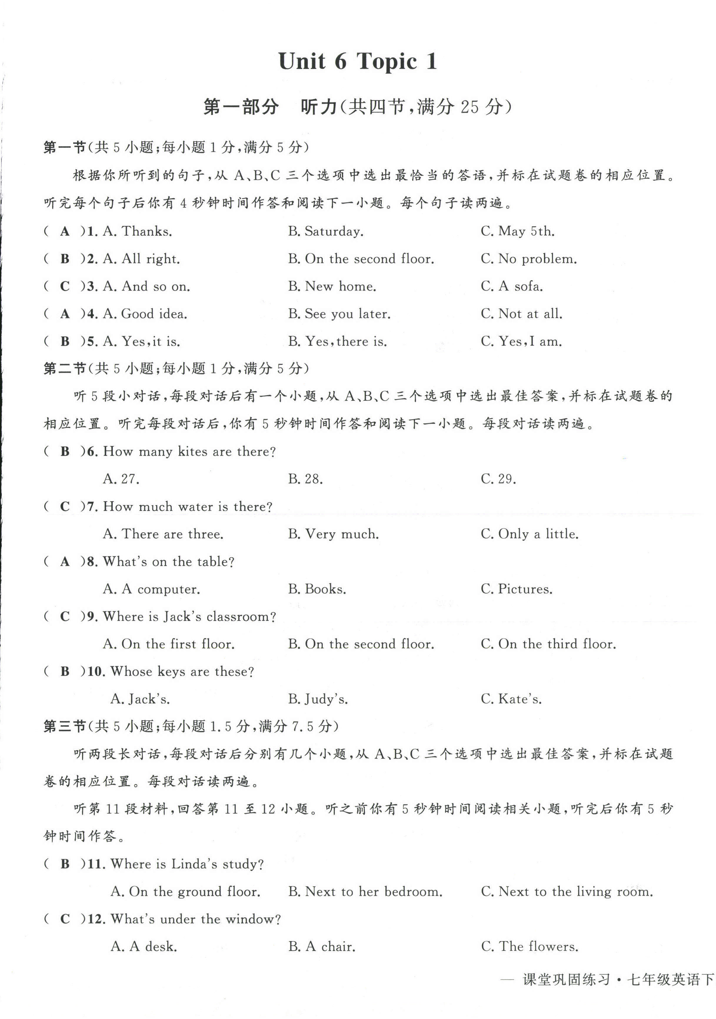 注:目前有些书本章节名称可能整理的还不是很完善,但都是按照顺序排列的,请同学们按照顺序仔细查找。练习册 2024年课堂巩固练习七年级英语下册仁爱版 答案主要是用来给同学们做完题方便对答案用的,请勿直接抄袭。