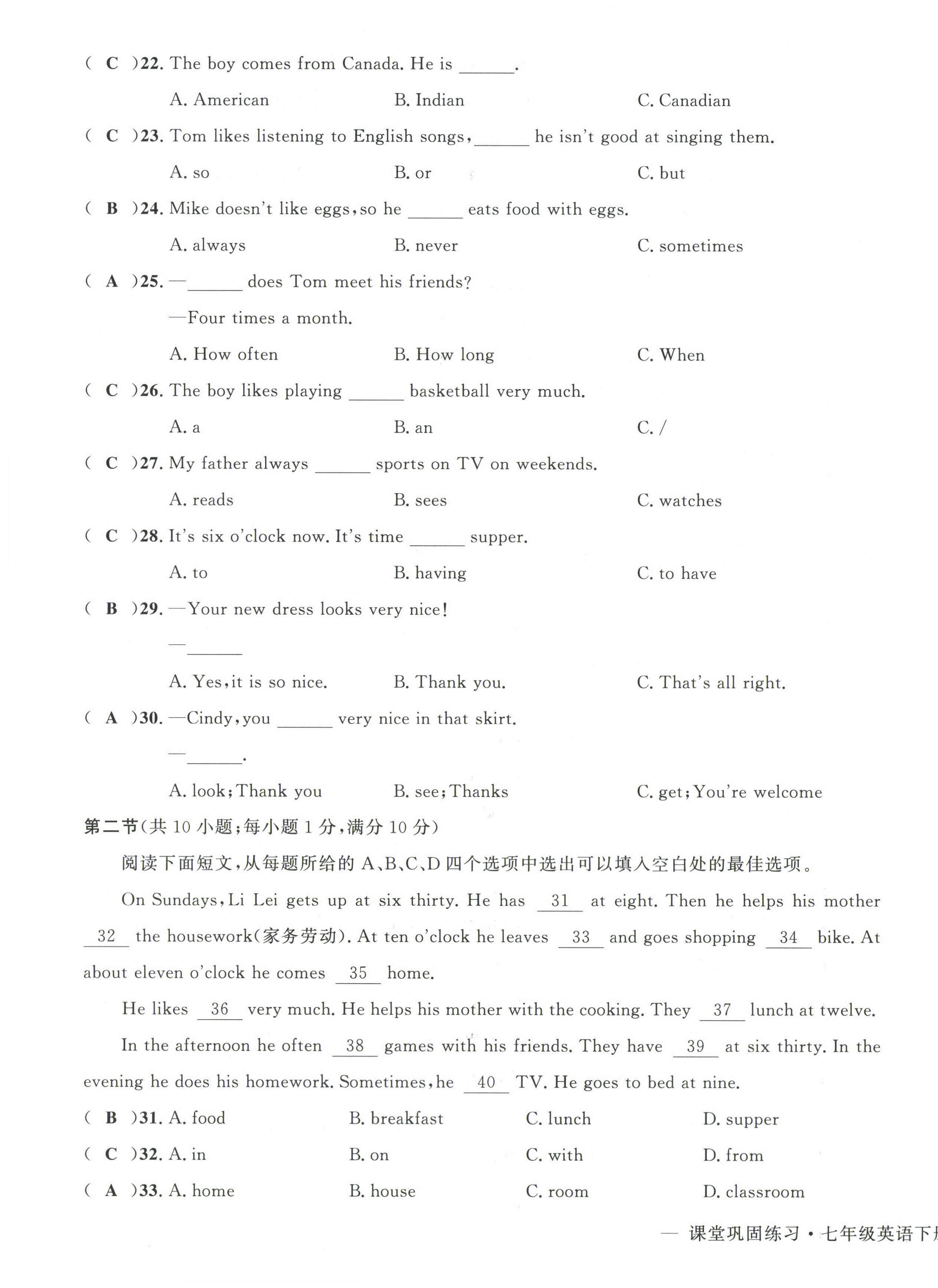 注:目前有些书本章节名称可能整理的还不是很完善,但都是按照顺序排列的,请同学们按照顺序仔细查找。练习册 2024年课堂巩固练习七年级英语下册仁爱版 答案主要是用来给同学们做完题方便对答案用的,请勿直接抄袭。