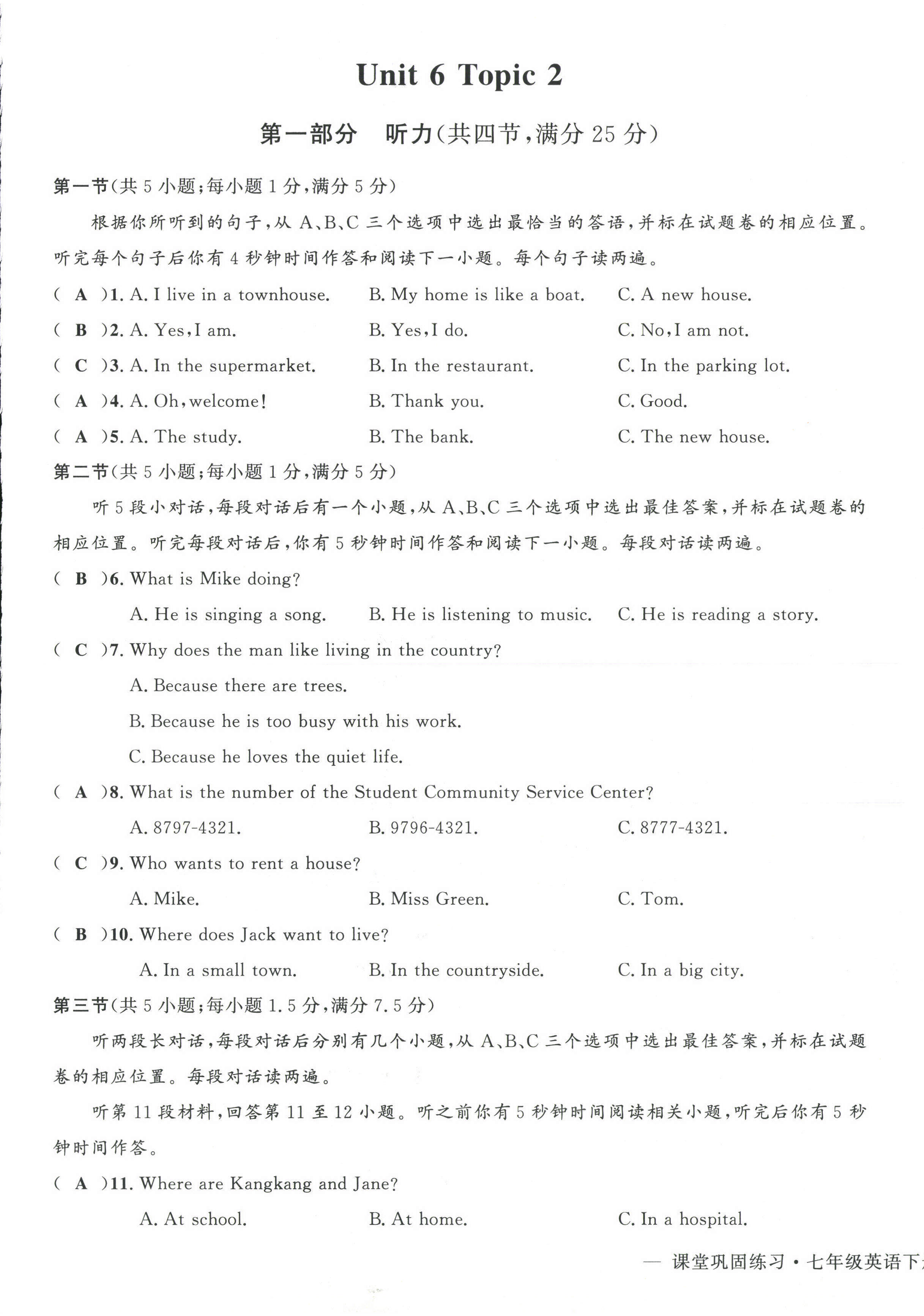 注:目前有些书本章节名称可能整理的还不是很完善,但都是按照顺序排列的,请同学们按照顺序仔细查找。练习册 2024年课堂巩固练习七年级英语下册仁爱版 答案主要是用来给同学们做完题方便对答案用的,请勿直接抄袭。