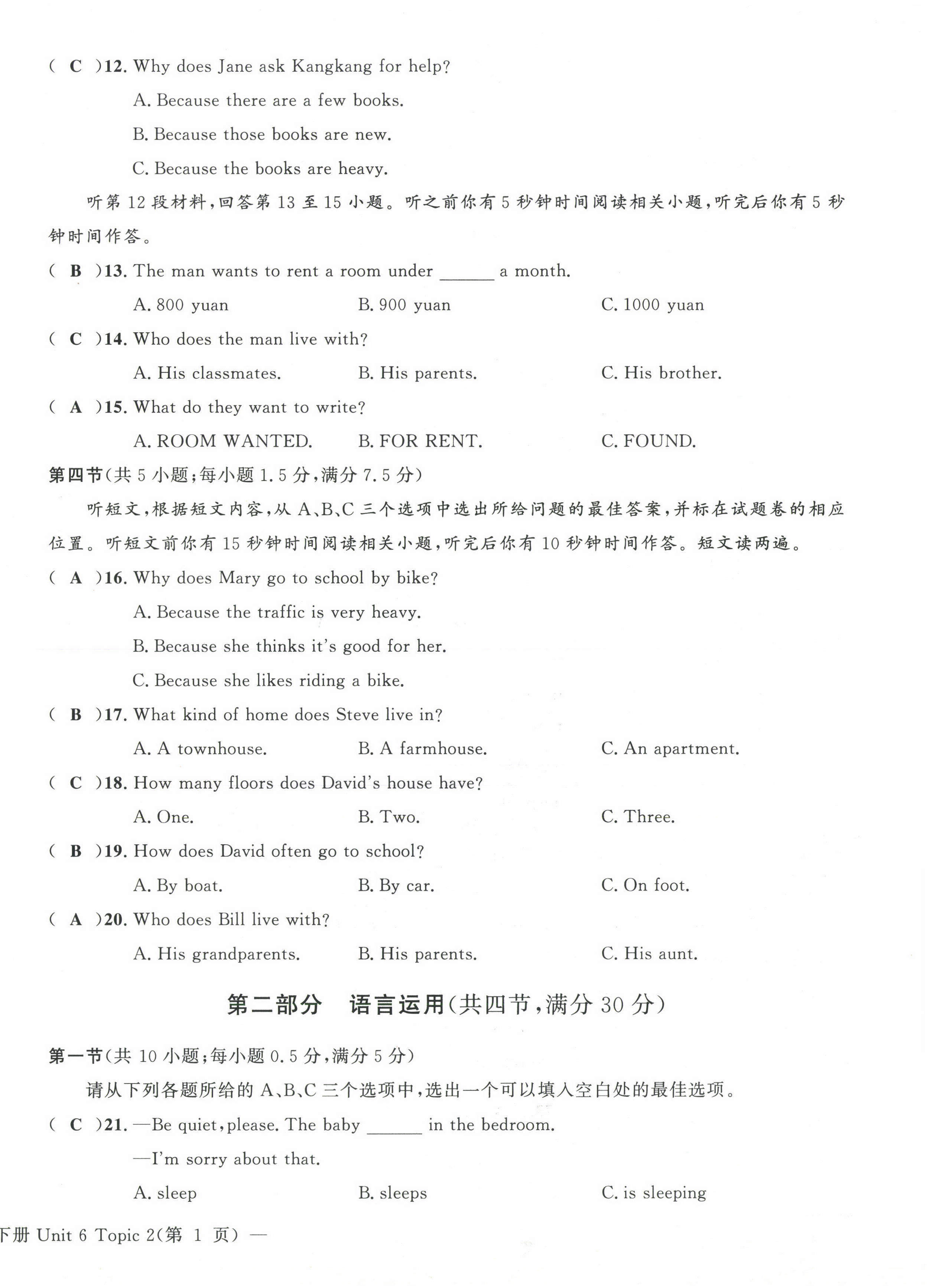 注:目前有些书本章节名称可能整理的还不是很完善,但都是按照顺序排列的,请同学们按照顺序仔细查找。练习册 2024年课堂巩固练习七年级英语下册仁爱版 答案主要是用来给同学们做完题方便对答案用的,请勿直接抄袭。