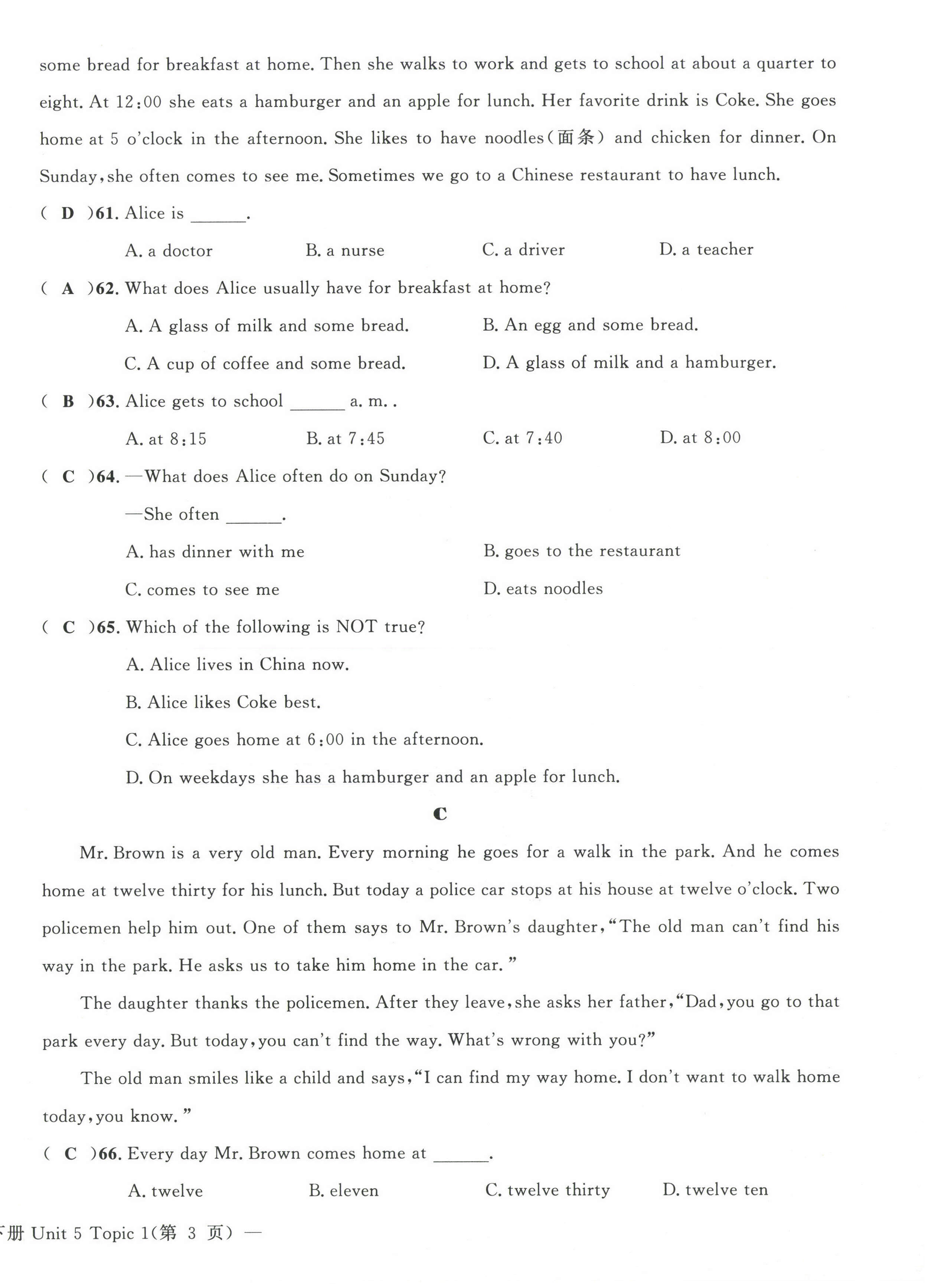 注:目前有些书本章节名称可能整理的还不是很完善,但都是按照顺序排列的,请同学们按照顺序仔细查找。练习册 2024年课堂巩固练习七年级英语下册仁爱版 答案主要是用来给同学们做完题方便对答案用的,请勿直接抄袭。