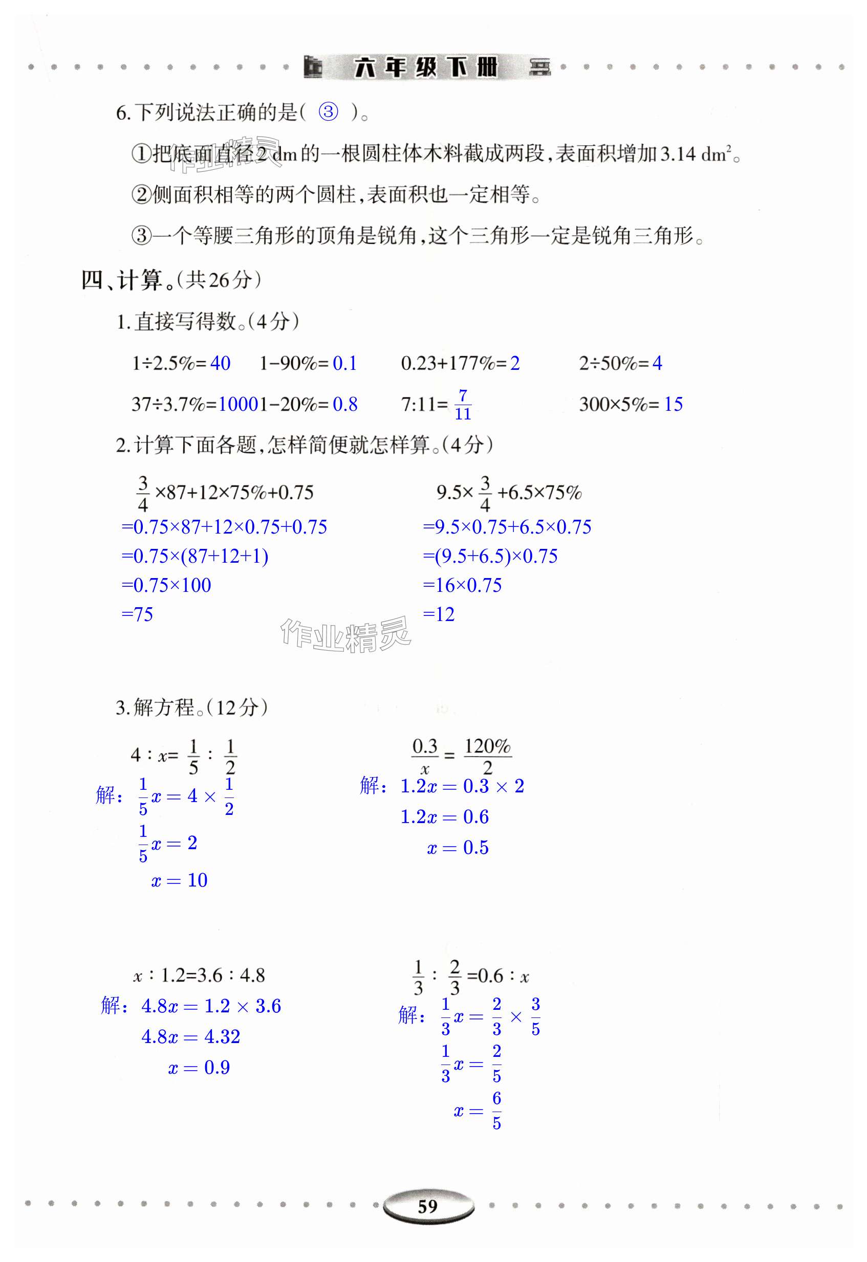 2024年智慧学习导学练明天出版社六年级数学下册人教版