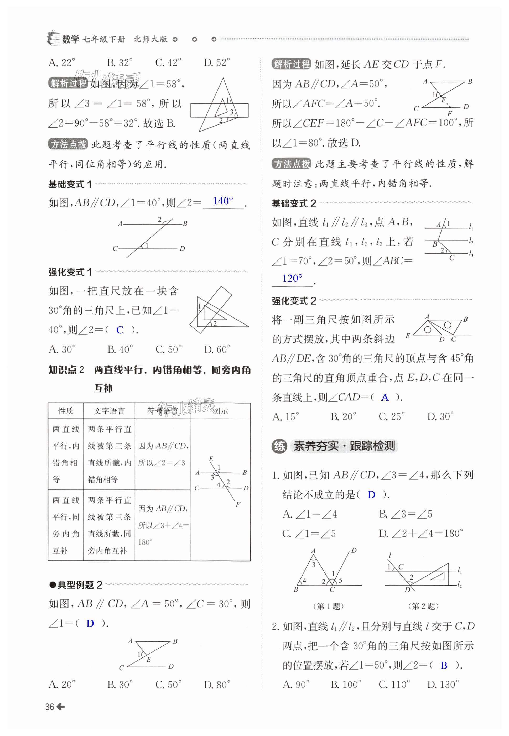 注:目前有些书本章节名称可能整理的还不是很完善,但都是按照顺序排列的,请同学们按照顺序仔细查找。练习册 2024年初中同步练习册七年级数学下册北师大版北京师范大学出版社 答案主要是用来给同学们做完题方便对答案用的,请勿直接抄袭。