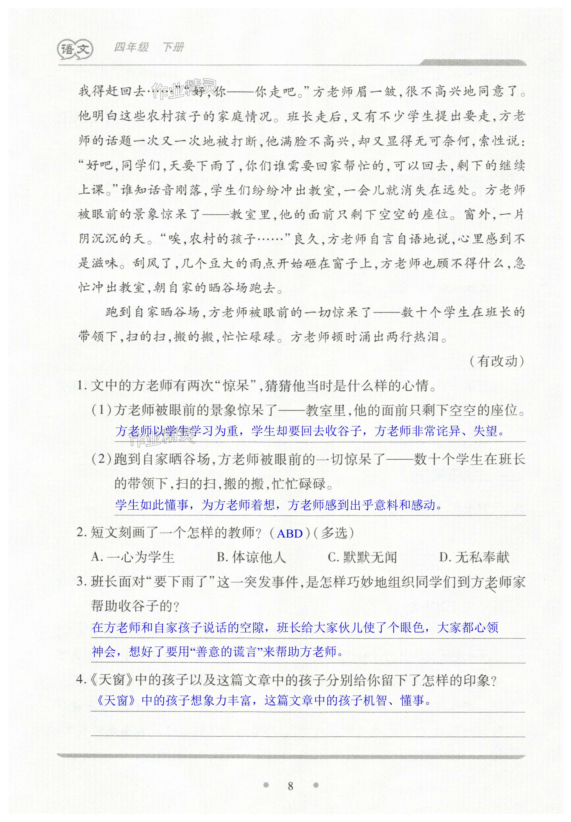 注:目前有些书本章节名称可能整理的还不是很完善,但都是按照顺序排列的,请同学们按照顺序仔细查找。练习册 2024年新课程新练习四年级语文下册人教版 答案主要是用来给同学们做完题方便对答案用的,请勿直接抄袭。