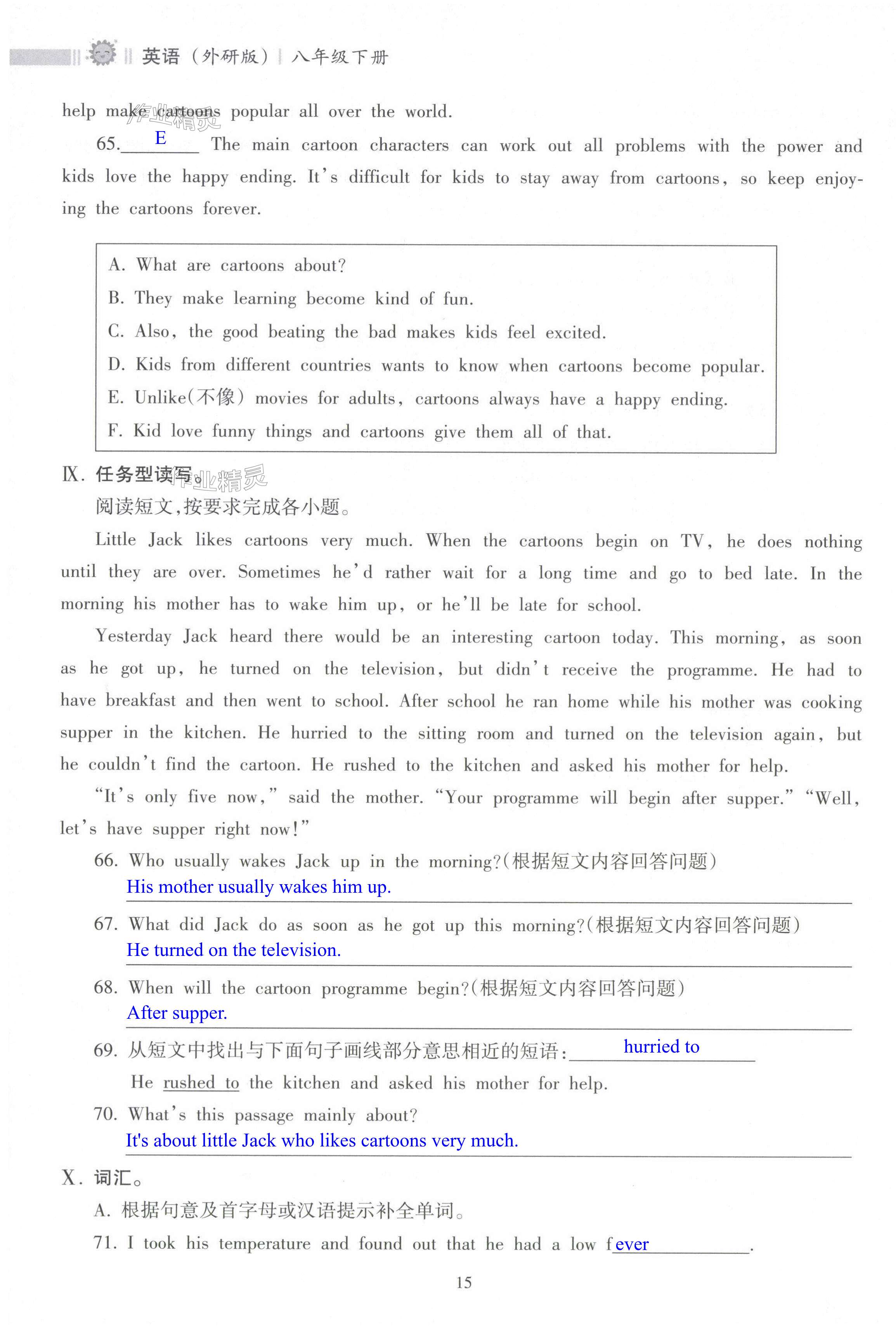 注:目前有些书本章节名称可能整理的还不是很完善,但都是按照顺序排列的,请同学们按照顺序仔细查找。练习册 2024年新课程课堂同步练习册八年级英语下册外研版 答案主要是用来给同学们做完题方便对答案用的,请勿直接抄袭。