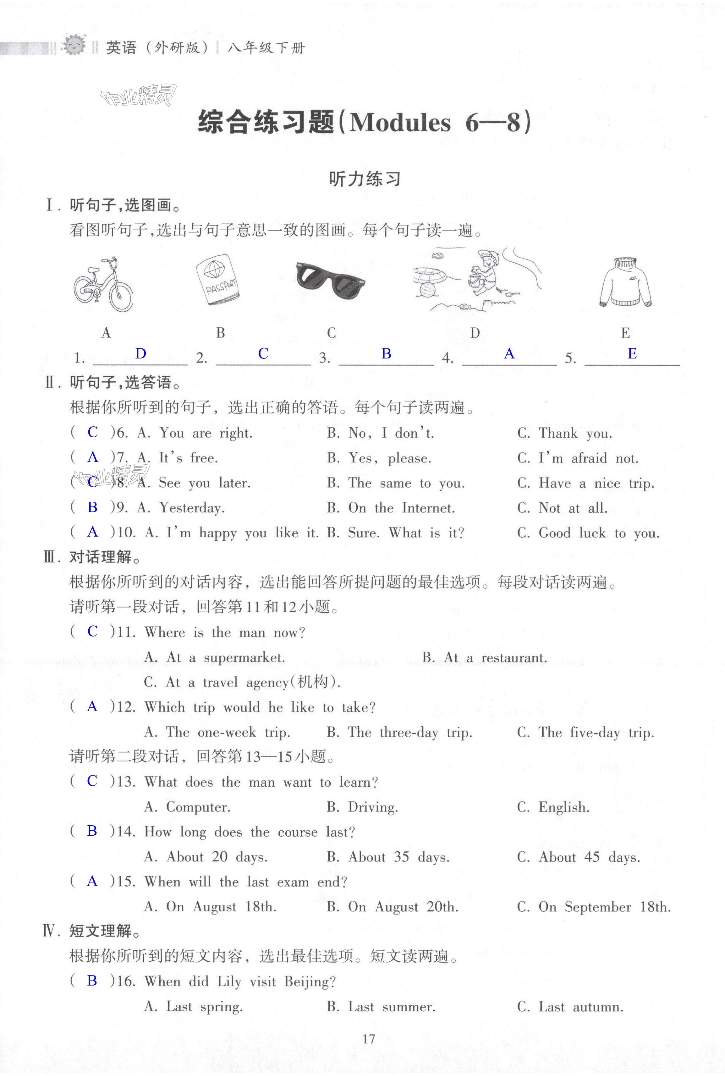 注:目前有些书本章节名称可能整理的还不是很完善,但都是按照顺序排列的,请同学们按照顺序仔细查找。练习册 2024年新课程课堂同步练习册八年级英语下册外研版 答案主要是用来给同学们做完题方便对答案用的,请勿直接抄袭。