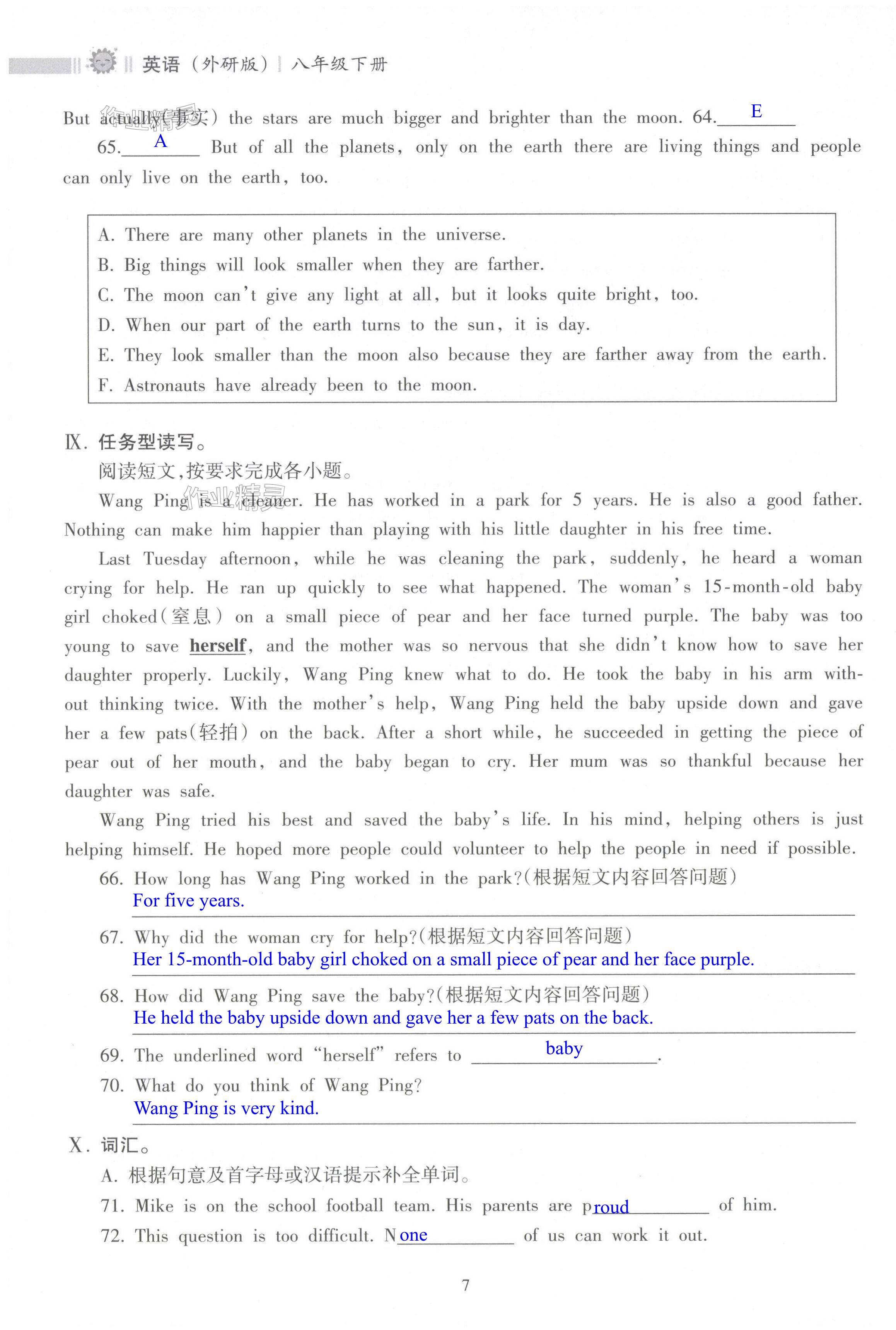 注:目前有些书本章节名称可能整理的还不是很完善,但都是按照顺序排列的,请同学们按照顺序仔细查找。练习册 2024年新课程课堂同步练习册八年级英语下册外研版 答案主要是用来给同学们做完题方便对答案用的,请勿直接抄袭。