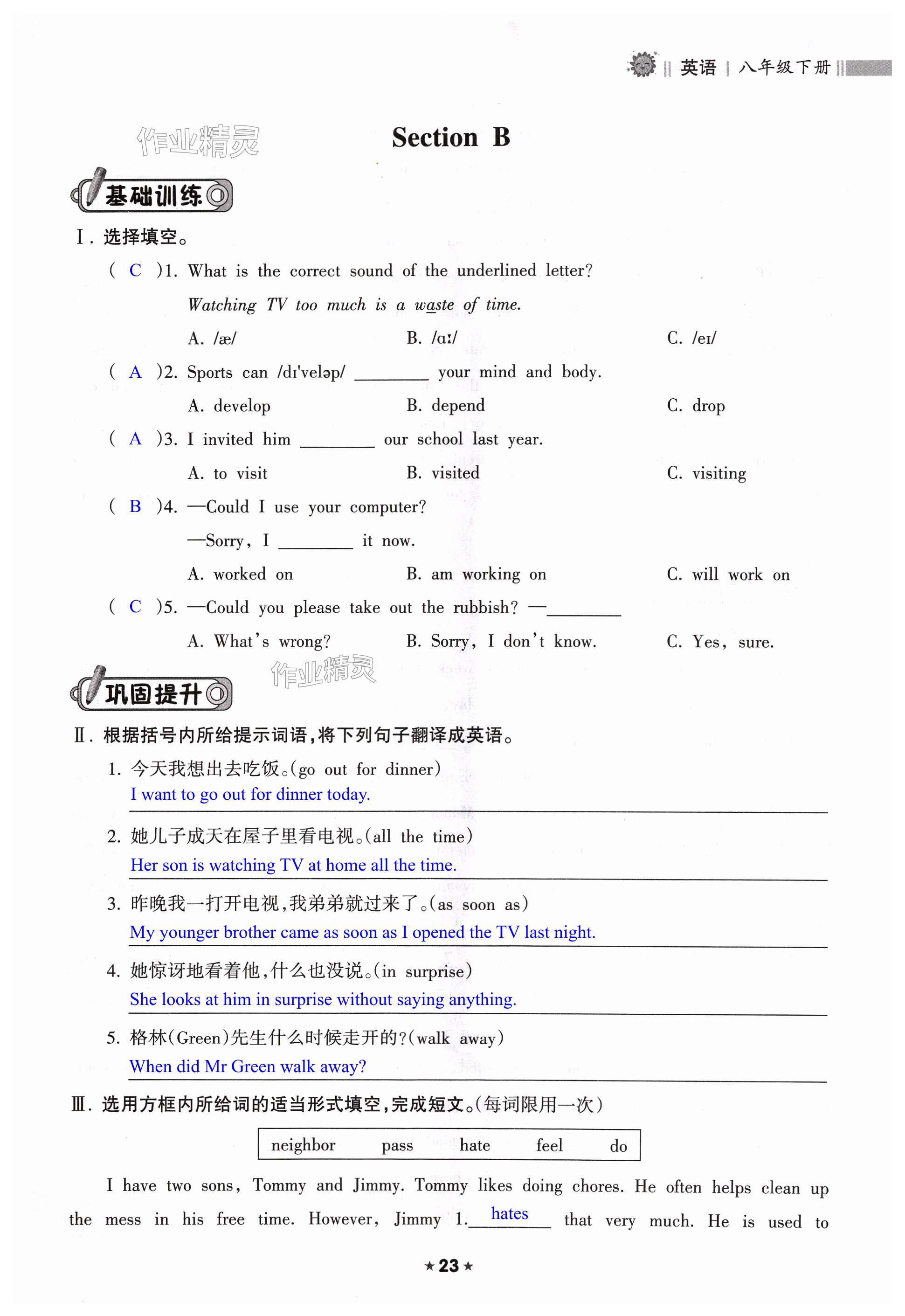 注:目前有些书本章节名称可能整理的还不是很完善,但都是按照顺序排列的,请同学们按照顺序仔细查找。练习册 2024年新课程课堂同步练习册八年级英语下册人教版 答案主要是用来给同学们做完题方便对答案用的,请勿直接抄袭。