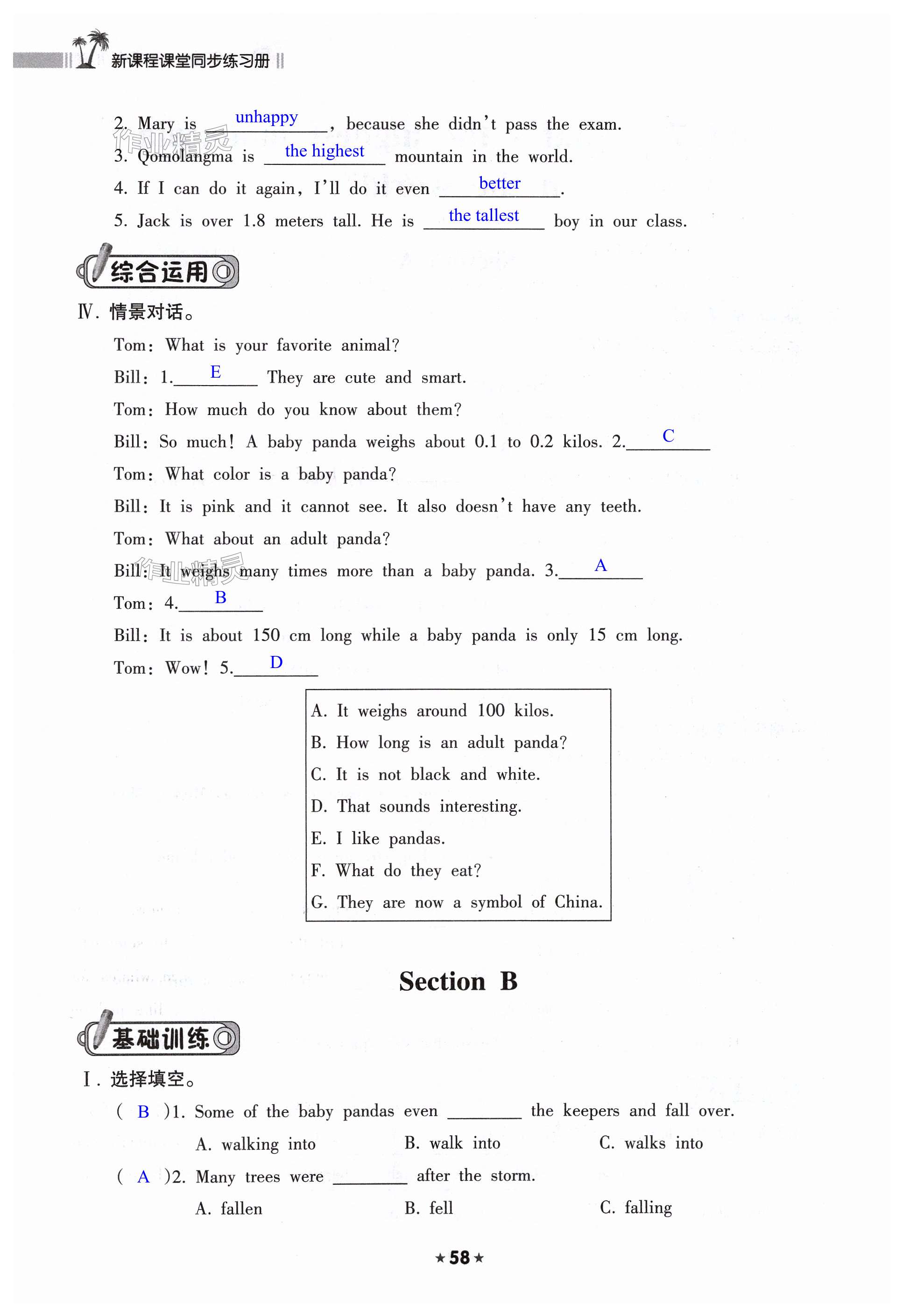注:目前有些书本章节名称可能整理的还不是很完善,但都是按照顺序排列的,请同学们按照顺序仔细查找。练习册 2024年新课程课堂同步练习册八年级英语下册人教版 答案主要是用来给同学们做完题方便对答案用的,请勿直接抄袭。