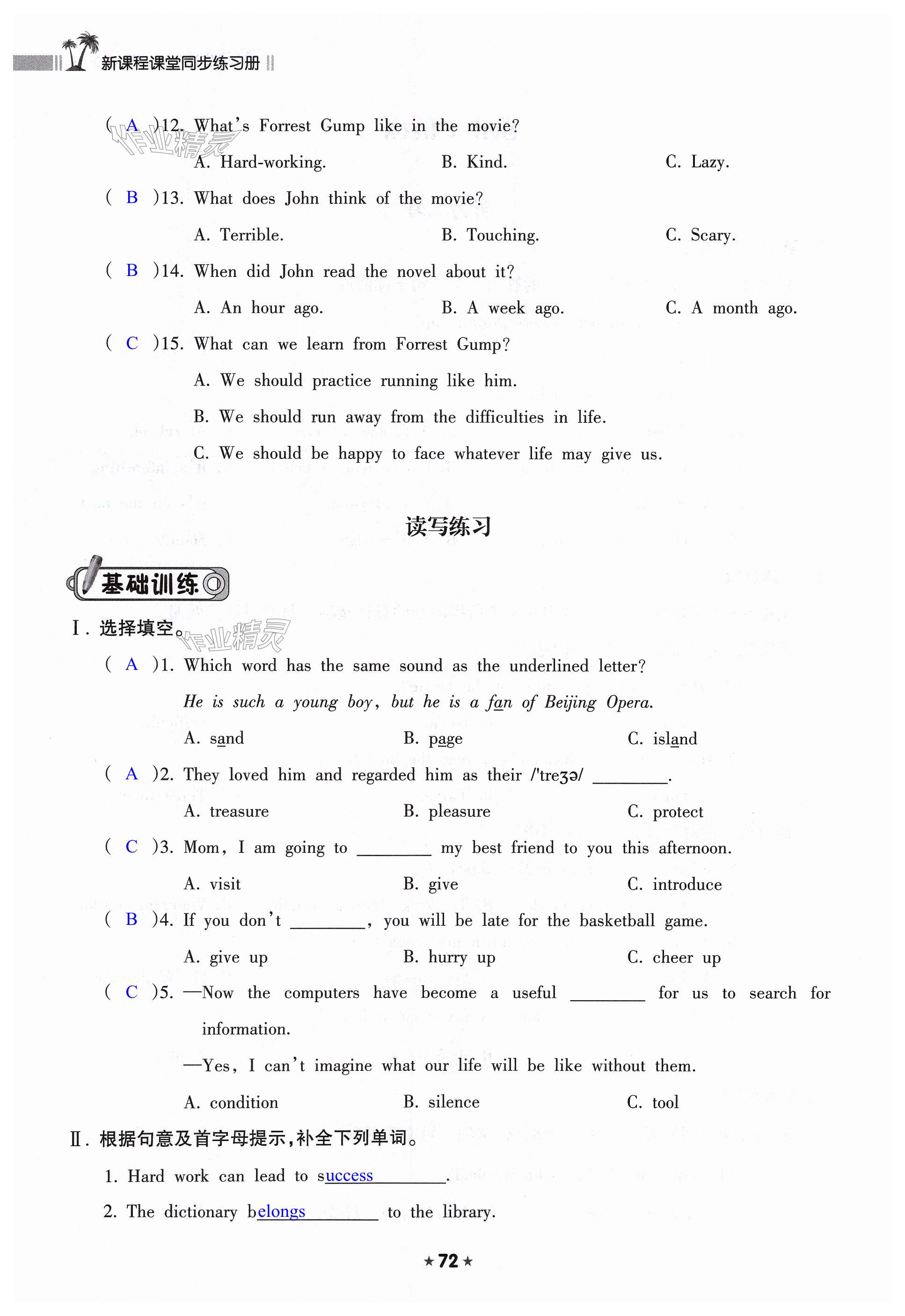 注:目前有些书本章节名称可能整理的还不是很完善,但都是按照顺序排列的,请同学们按照顺序仔细查找。练习册 2024年新课程课堂同步练习册八年级英语下册人教版 答案主要是用来给同学们做完题方便对答案用的,请勿直接抄袭。