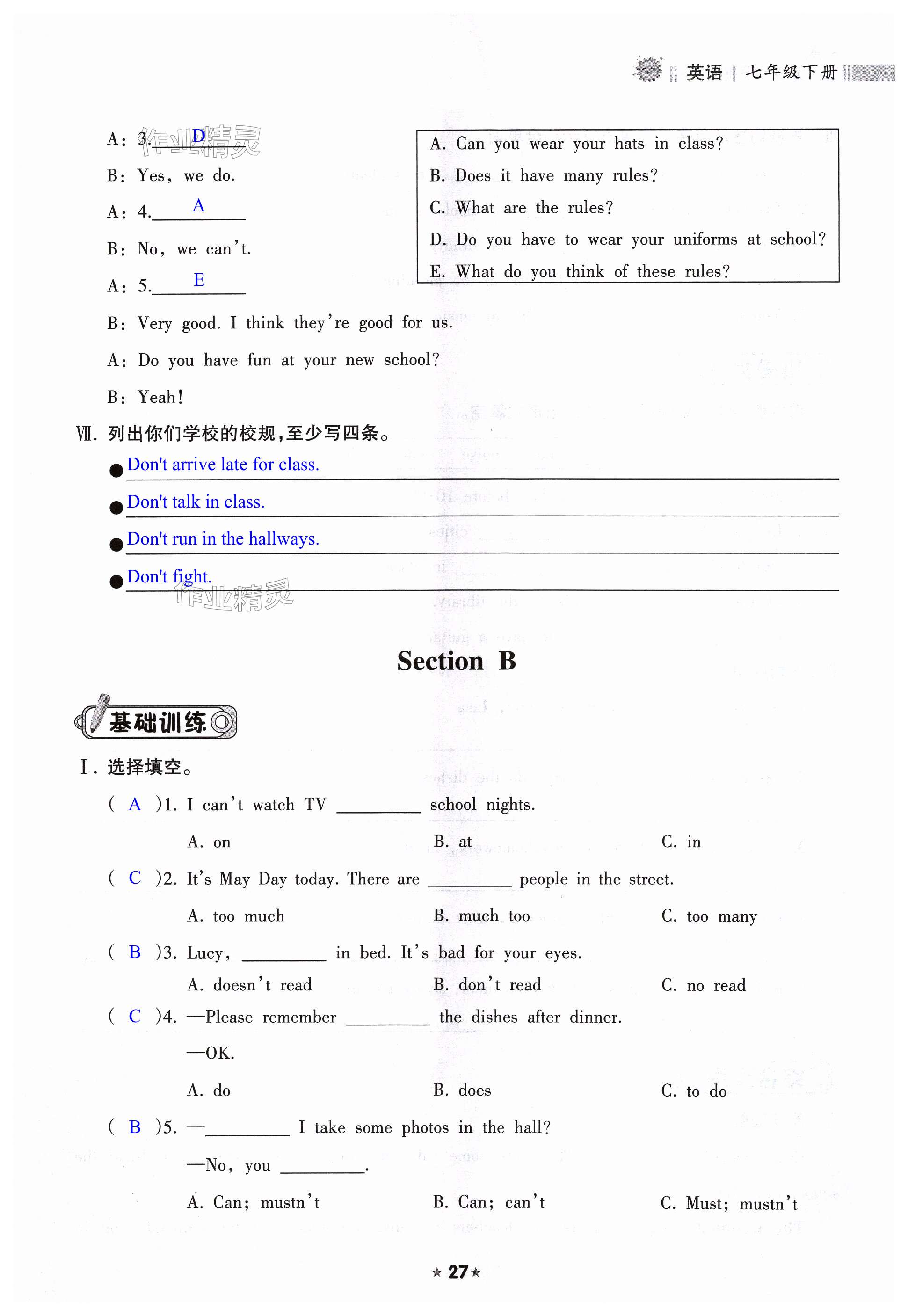 注:目前有些书本章节名称可能整理的还不是很完善,但都是按照顺序排列的,请同学们按照顺序仔细查找。练习册 2024年新课程课堂同步练习册七年级英语下册人教版 答案主要是用来给同学们做完题方便对答案用的,请勿直接抄袭。
