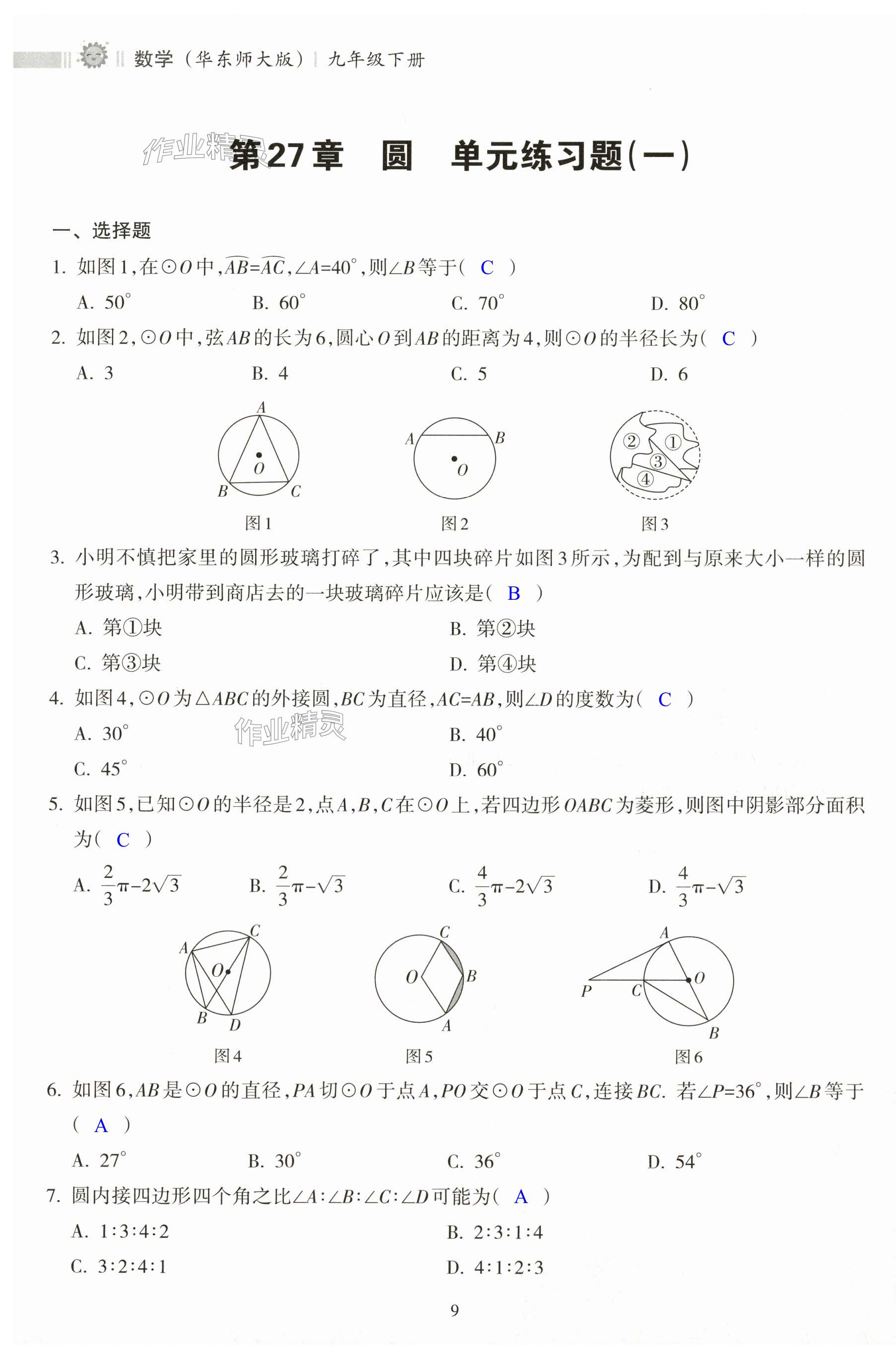 注:目前有些书本章节名称可能整理的还不是很完善,但都是按照顺序排列的,请同学们按照顺序仔细查找。练习册 2024年新课程课堂同步练习册九年级数学下册华师大版 答案主要是用来给同学们做完题方便对答案用的,请勿直接抄袭。