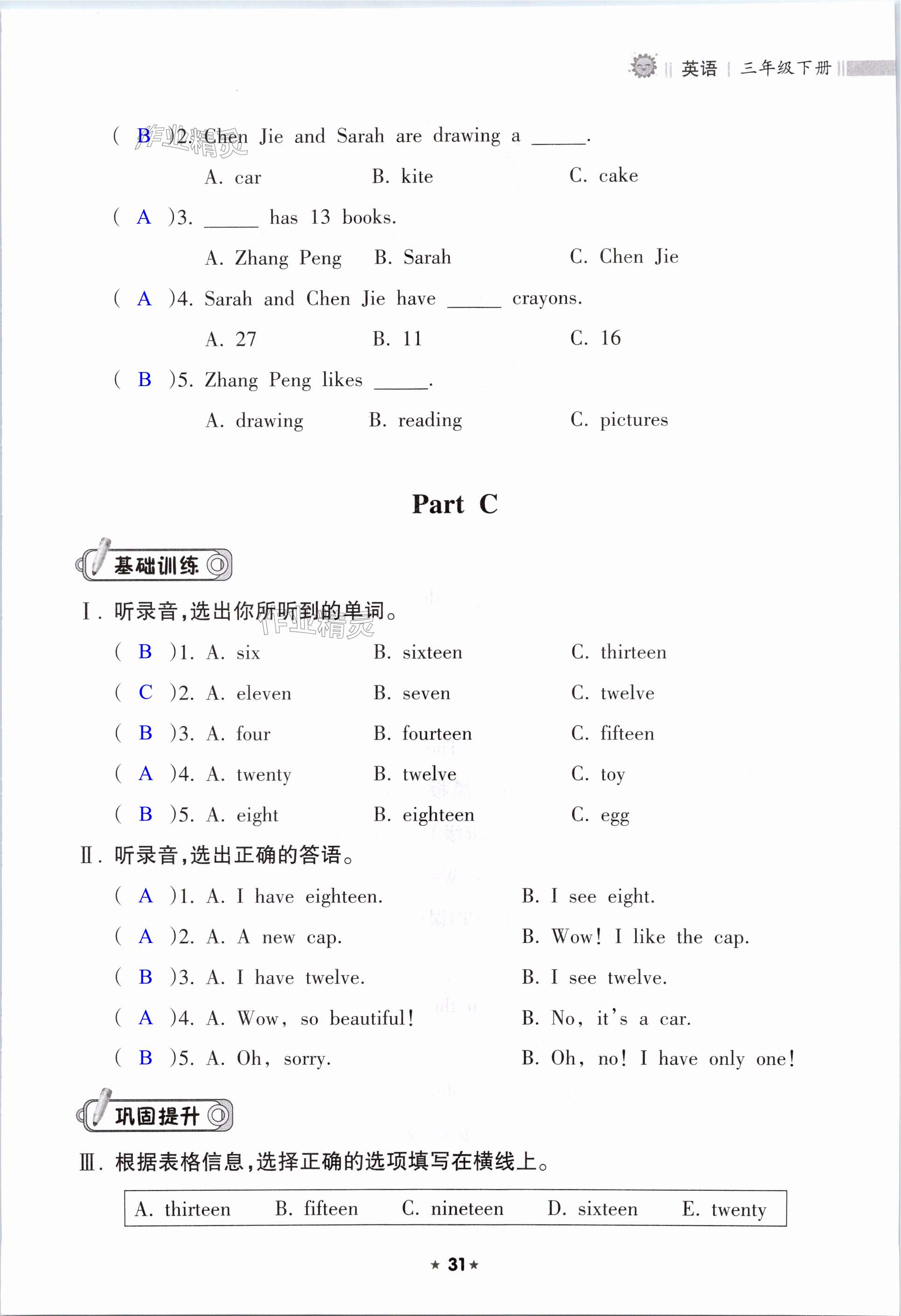 注:目前有些书本章节名称可能整理的还不是很完善,但都是按照顺序排列的,请同学们按照顺序仔细查找。练习册 2024年新课程课堂同步练习册三年级英语下册人教版 答案主要是用来给同学们做完题方便对答案用的,请勿直接抄袭。