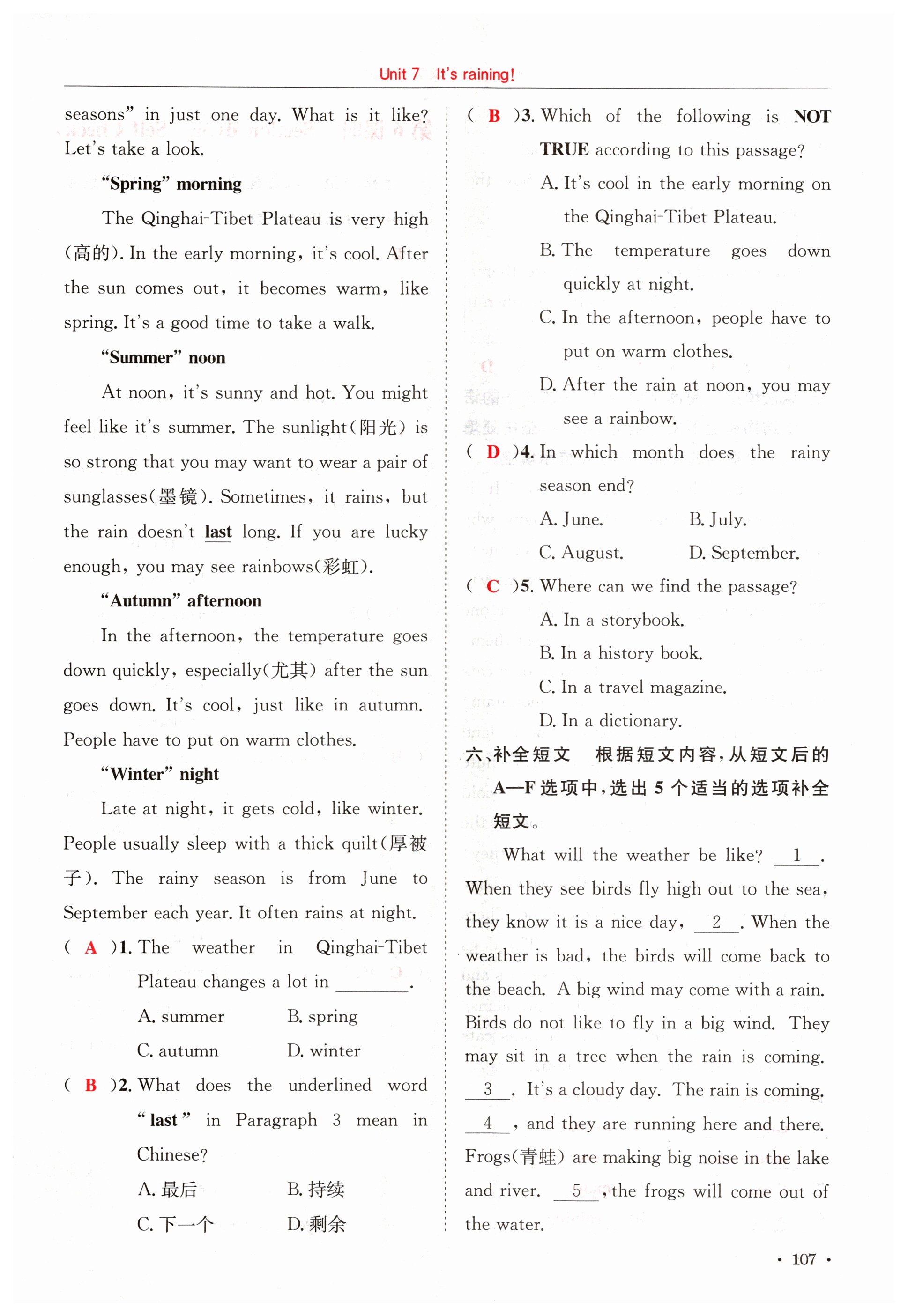 注:目前有些书本章节名称可能整理的还不是很完善,但都是按照顺序排列的,请同学们按照顺序仔细查找。练习册 2024年蓉城学霸七年级英语下册人教版 答案主要是用来给同学们做完题方便对答案用的,请勿直接抄袭。