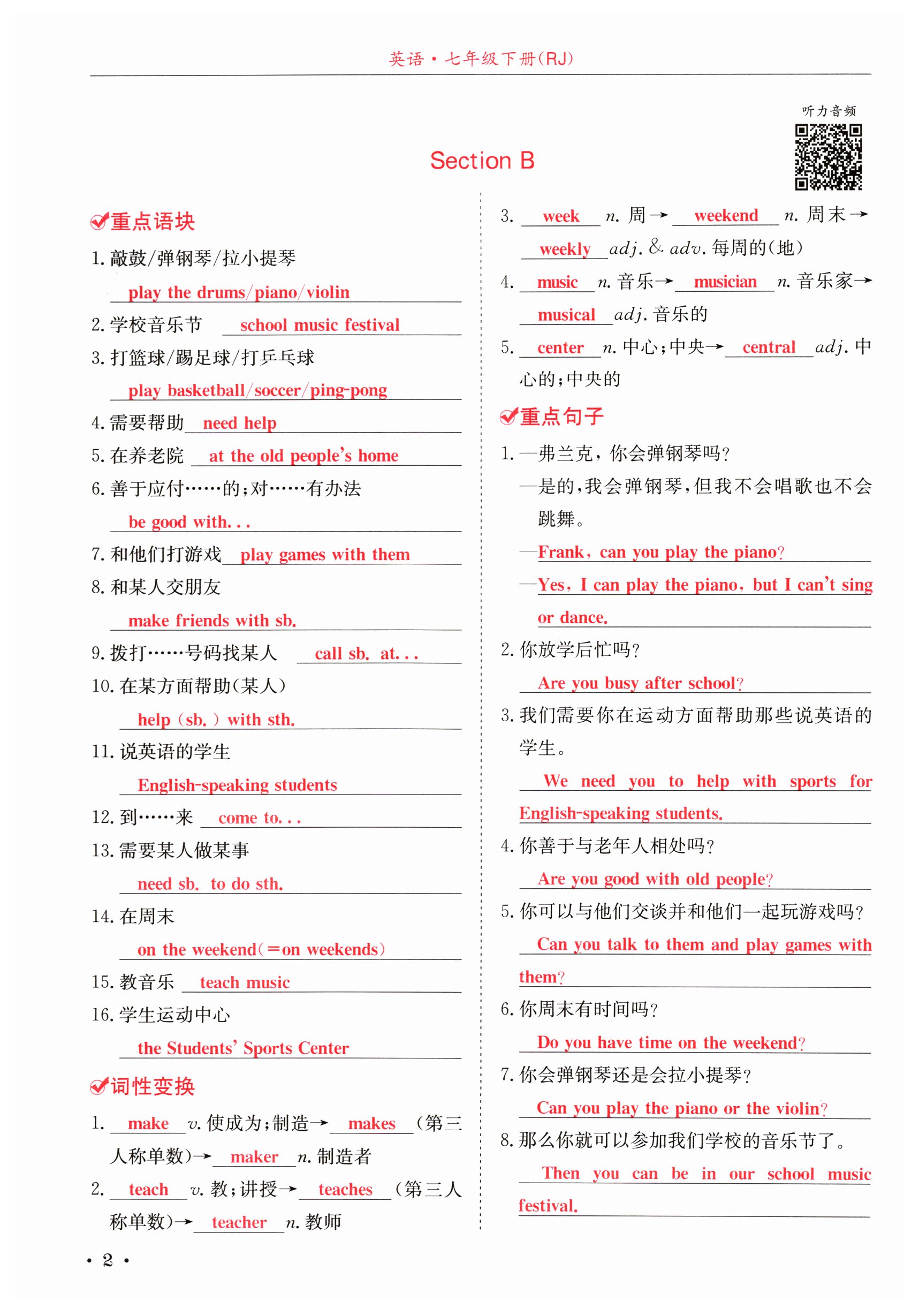 注:目前有些书本章节名称可能整理的还不是很完善,但都是按照顺序排列的,请同学们按照顺序仔细查找。练习册 2024年蓉城学霸七年级英语下册人教版 答案主要是用来给同学们做完题方便对答案用的,请勿直接抄袭。