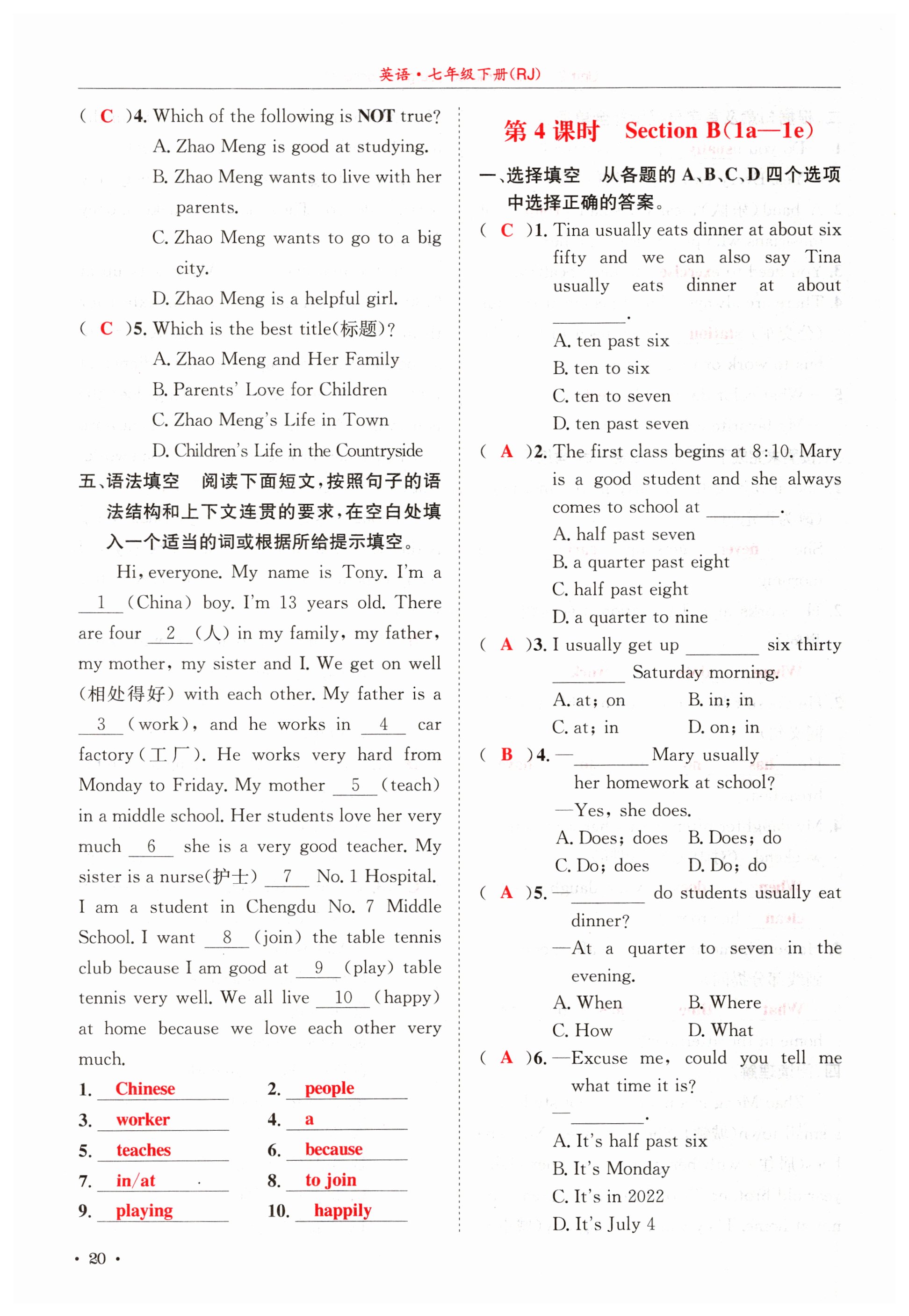 注:目前有些书本章节名称可能整理的还不是很完善,但都是按照顺序排列的,请同学们按照顺序仔细查找。练习册 2024年蓉城学霸七年级英语下册人教版 答案主要是用来给同学们做完题方便对答案用的,请勿直接抄袭。