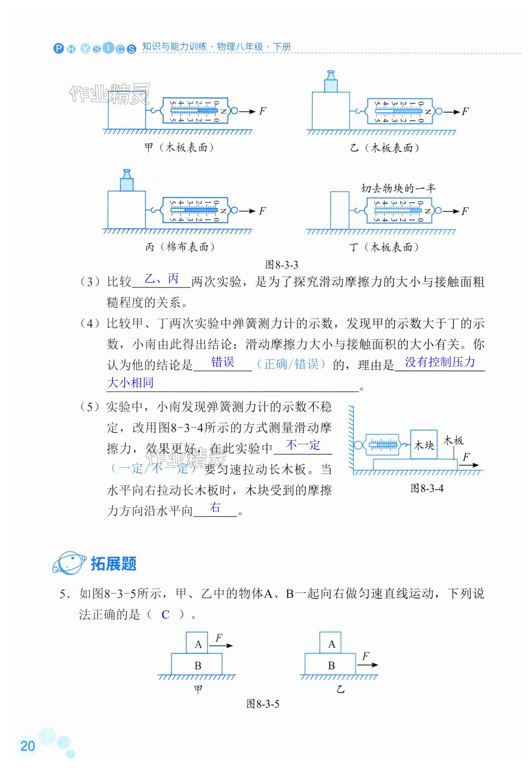 注:目前有些书本章节名称可能整理的还不是很完善,但都是按照顺序排列的,请同学们按照顺序仔细查找。练习册 2024年知识与能力训练八年级物理下册人教版 答案主要是用来给同学们做完题方便对答案用的,请勿直接抄袭。