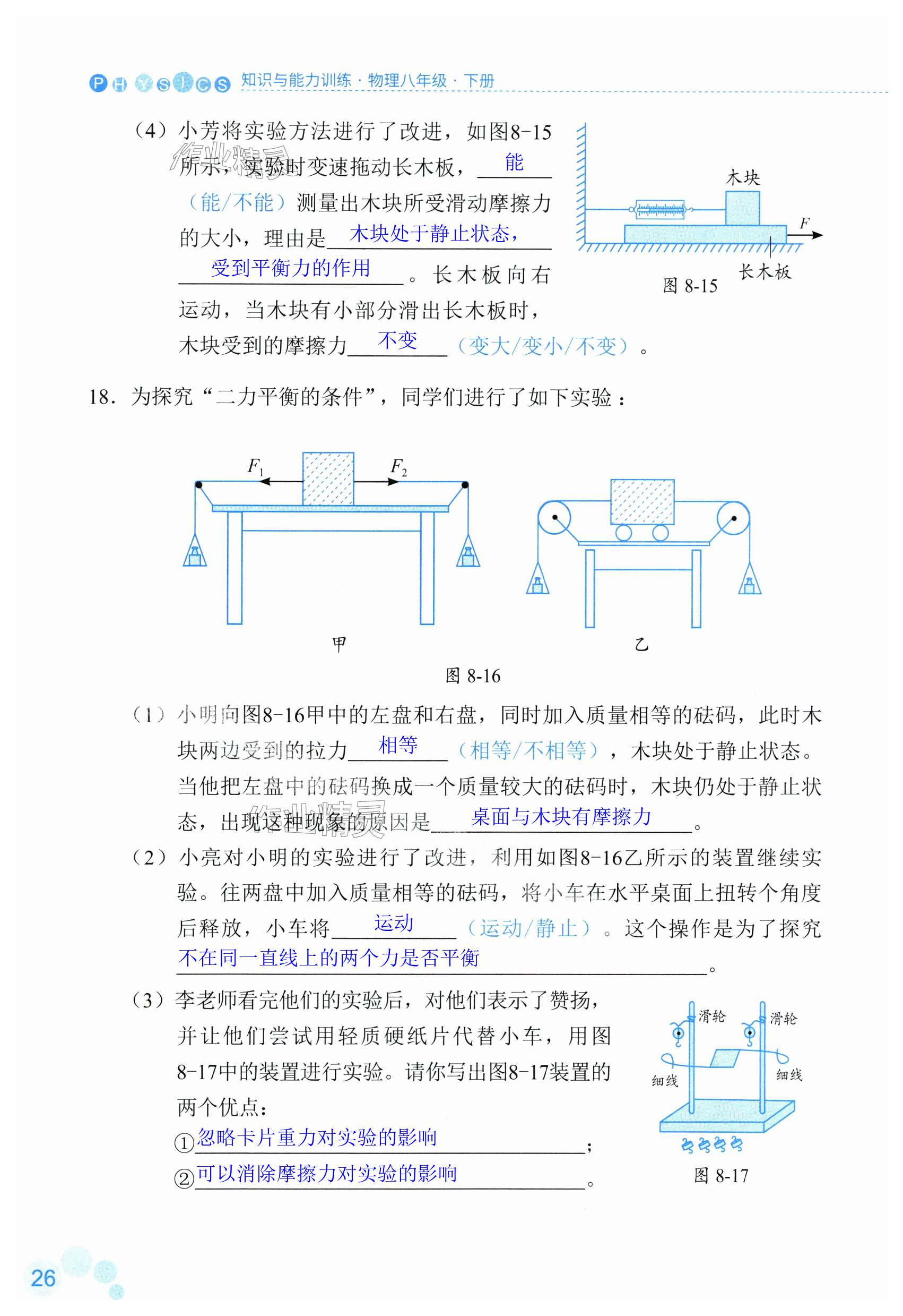 注:目前有些书本章节名称可能整理的还不是很完善,但都是按照顺序排列的,请同学们按照顺序仔细查找。练习册 2024年知识与能力训练八年级物理下册人教版 答案主要是用来给同学们做完题方便对答案用的,请勿直接抄袭。