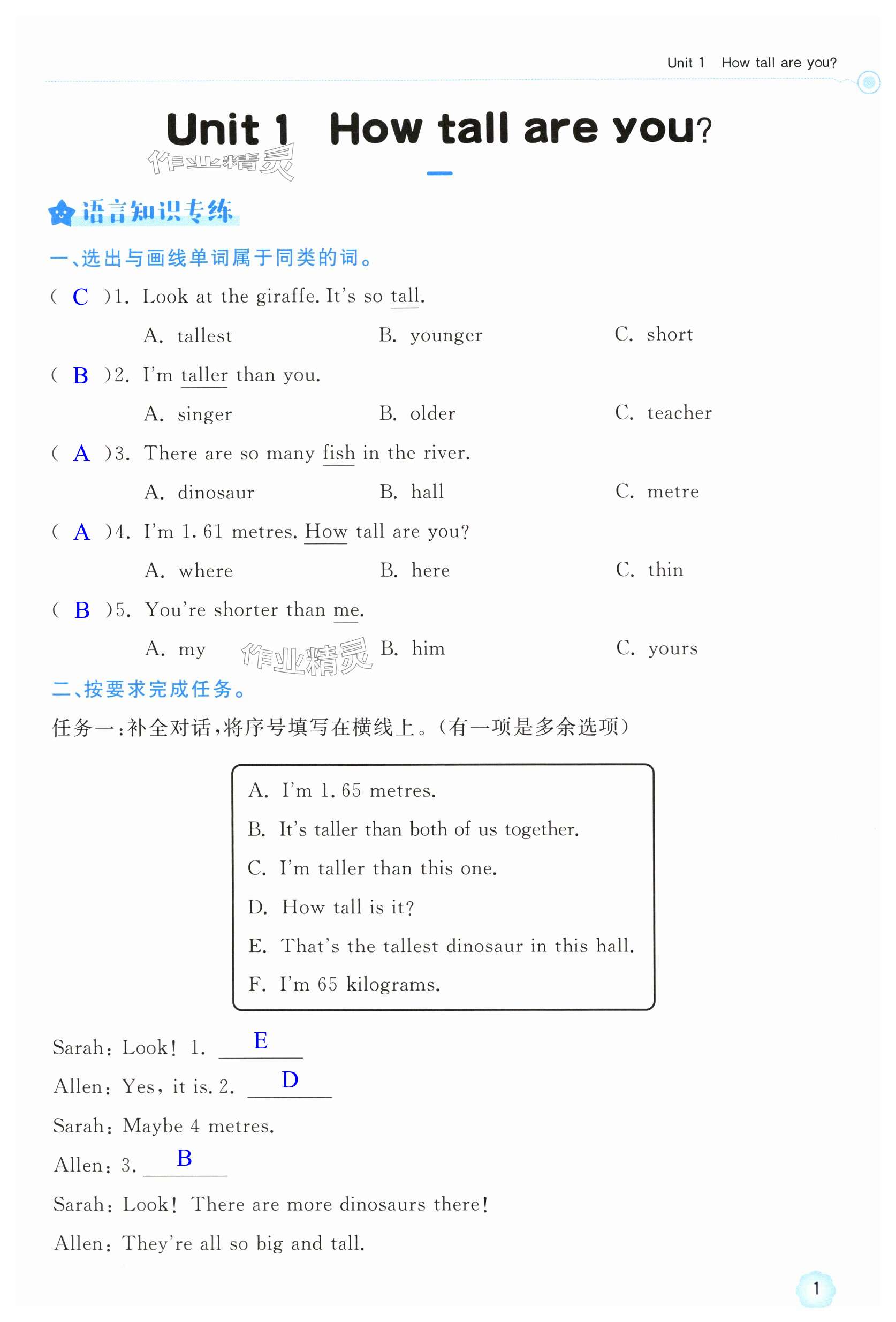 注:目前有些书本章节名称可能整理的还不是很完善,但都是按照顺序排列的,请同学们按照顺序仔细查找。练习册 2024年新课标学习方法指导丛书六年级英语下册人教版 答案主要是用来给同学们做完题方便对答案用的,请勿直接抄袭。