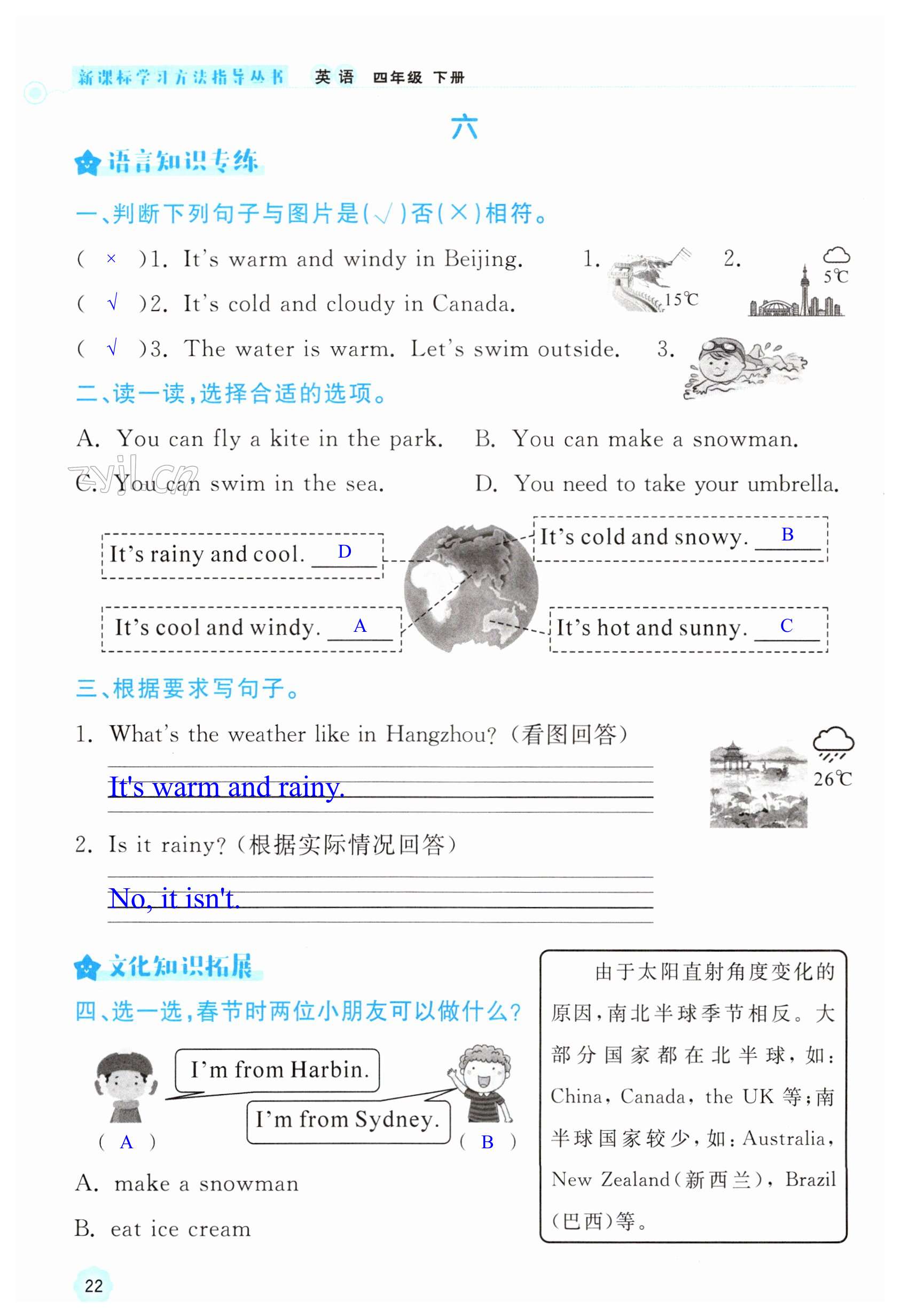 注:目前有些书本章节名称可能整理的还不是很完善,但都是按照顺序排列的,请同学们按照顺序仔细查找。练习册 2024年新课标学习方法指导丛书四年级英语下册人教版 答案主要是用来给同学们做完题方便对答案用的,请勿直接抄袭。