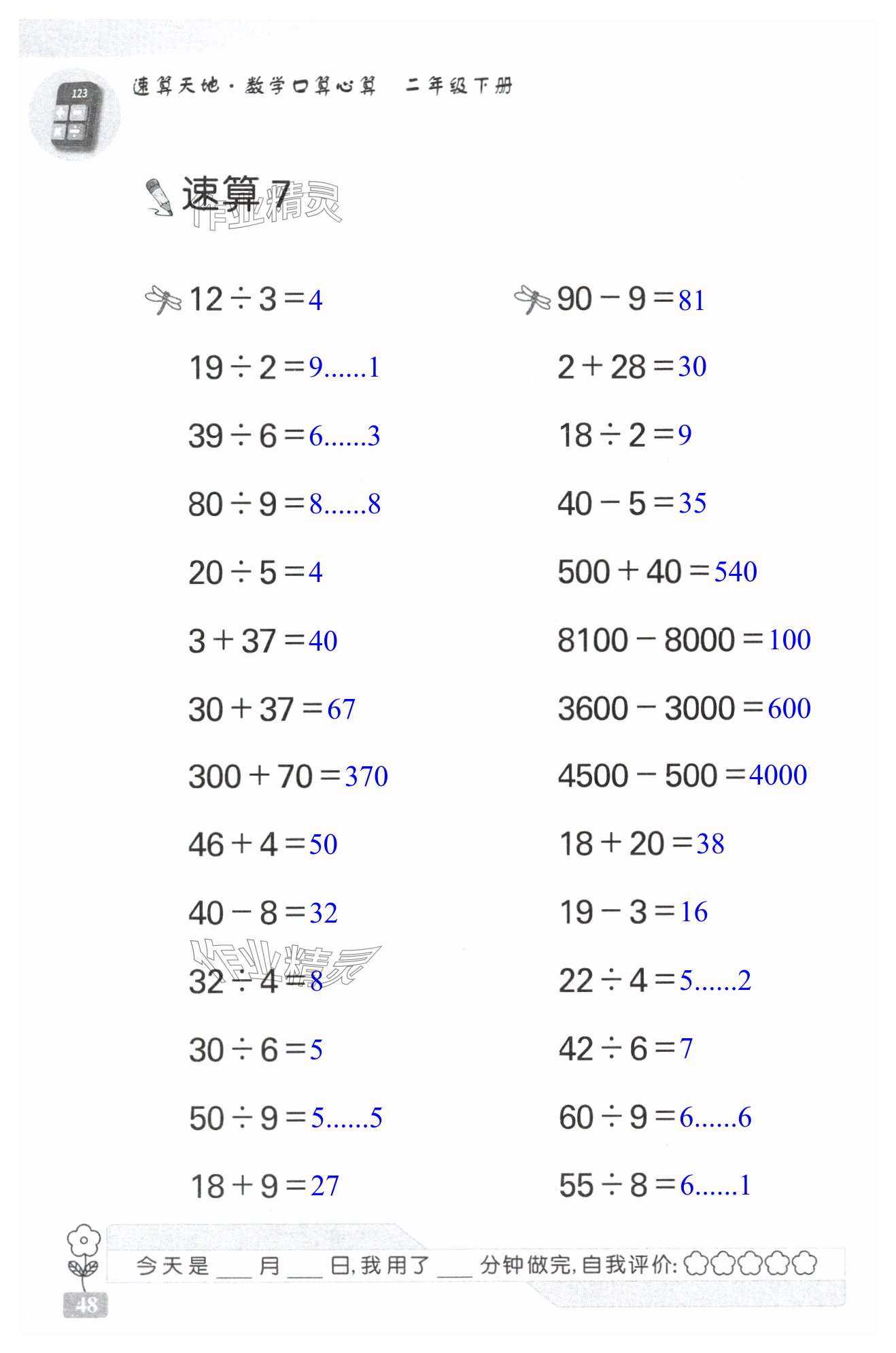 注:目前有些书本章节名称可能整理的还不是很完善,但都是按照顺序排列的,请同学们按照顺序仔细查找。练习册 2024年速算天地数学口算心算二年级下册苏教版 答案主要是用来给同学们做完题方便对答案用的,请勿直接抄袭。