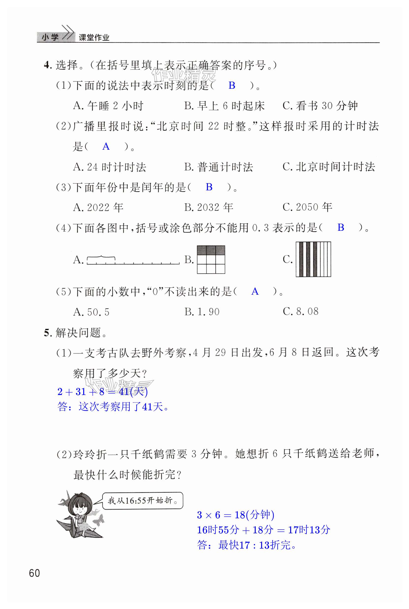 注:目前有些书本章节名称可能整理的还不是很完善,但都是按照顺序排列的,请同学们按照顺序仔细查找。练习册 2024年课堂作业武汉出版社三年级数学下册人教版 答案主要是用来给同学们做完题方便对答案用的,请勿直接抄袭。