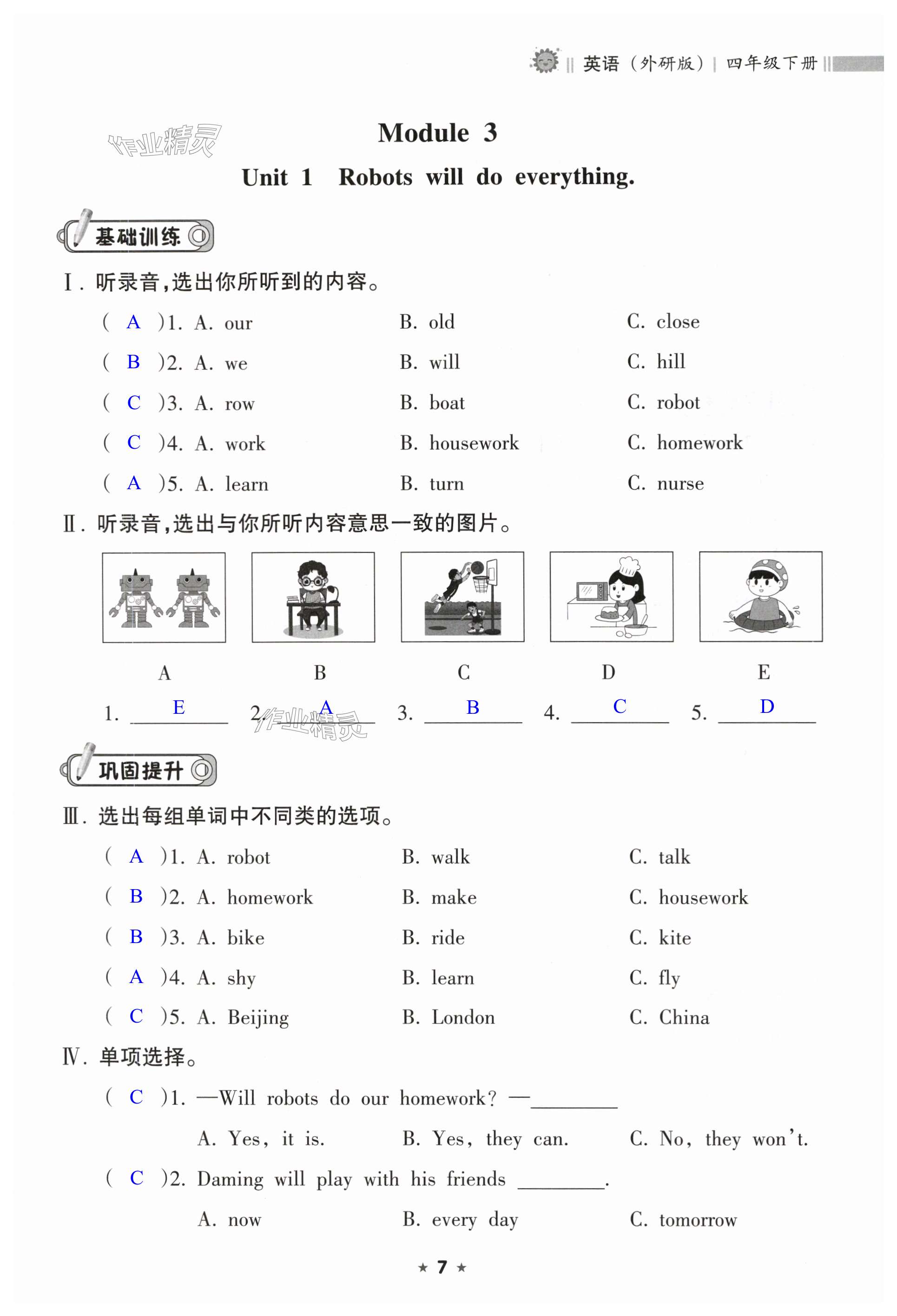 注:目前有些书本章节名称可能整理的还不是很完善,但都是按照顺序排列的,请同学们按照顺序仔细查找。练习册 2024年新课程课堂同步练习册四年级英语下册外研版 答案主要是用来给同学们做完题方便对答案用的,请勿直接抄袭。