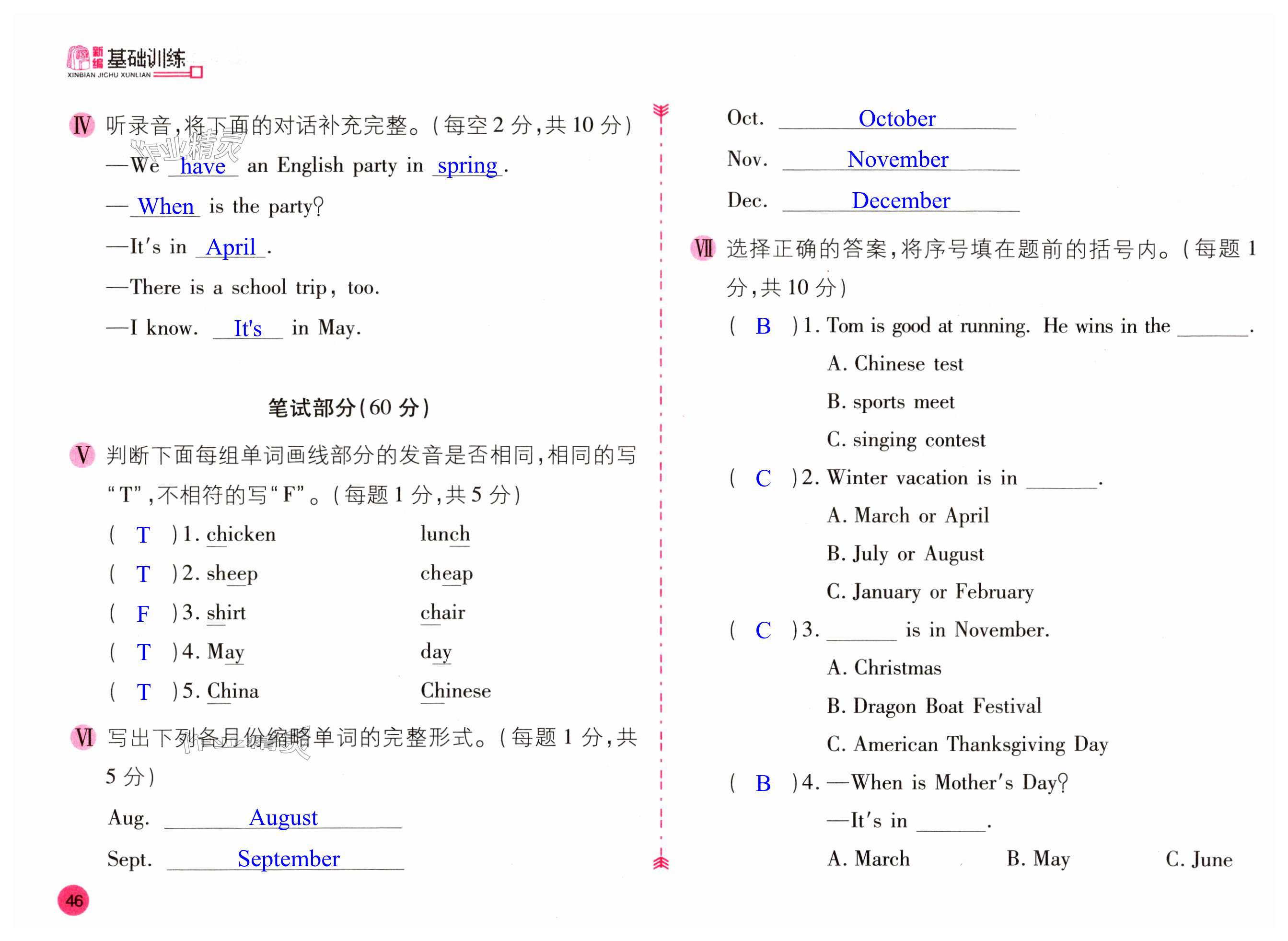 注:目前有些书本章节名称可能整理的还不是很完善,但都是按照顺序排列的,请同学们按照顺序仔细查找。练习册 2024年新编基础训练五年级英语下册人教版 答案主要是用来给同学们做完题方便对答案用的,请勿直接抄袭。