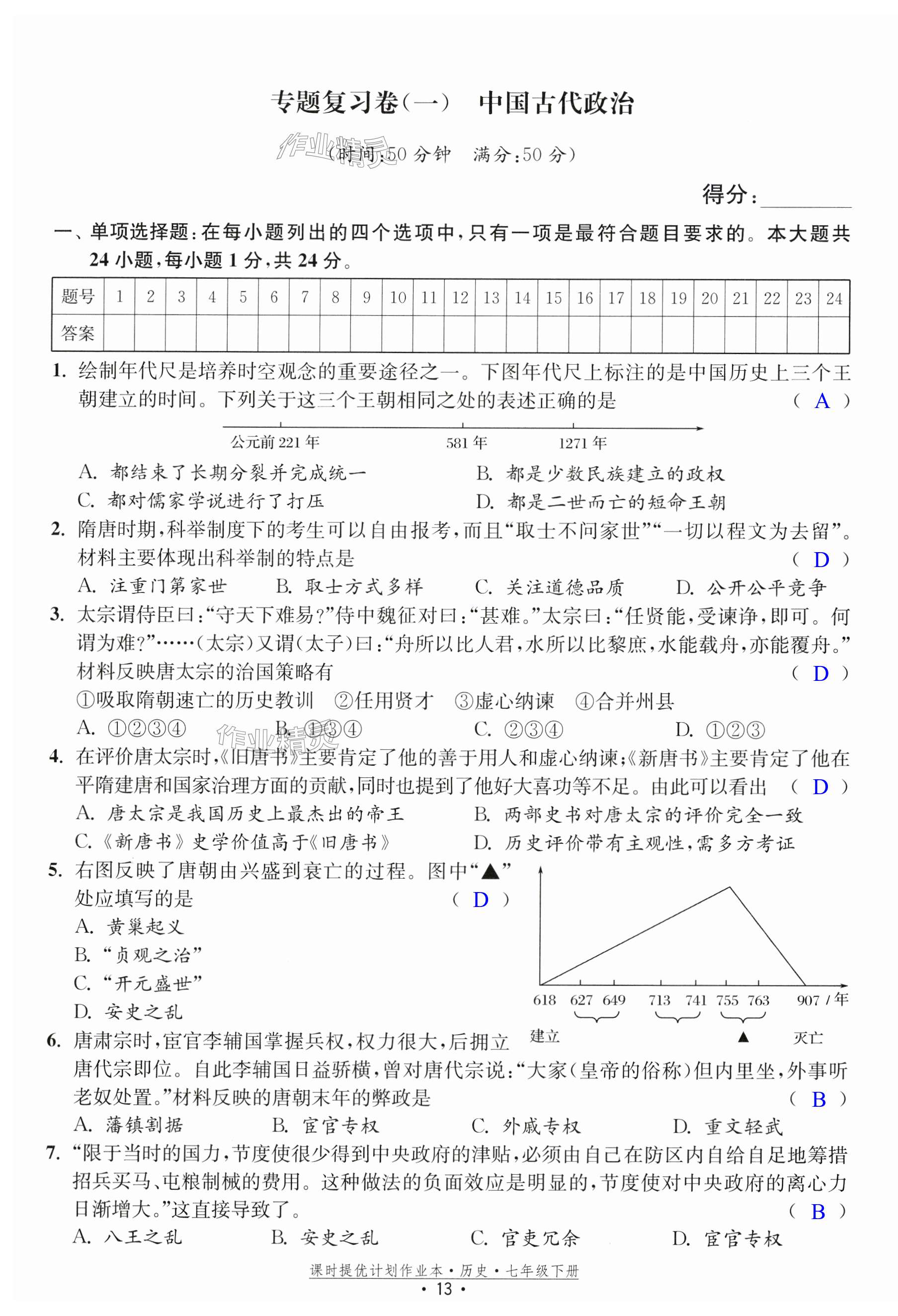 注:目前有些书本章节名称可能整理的还不是很完善,但都是按照顺序排列的,请同学们按照顺序仔细查找。练习册 2024年课时提优计划作业本七年级历史下册人教版 答案主要是用来给同学们做完题方便对答案用的,请勿直接抄袭。