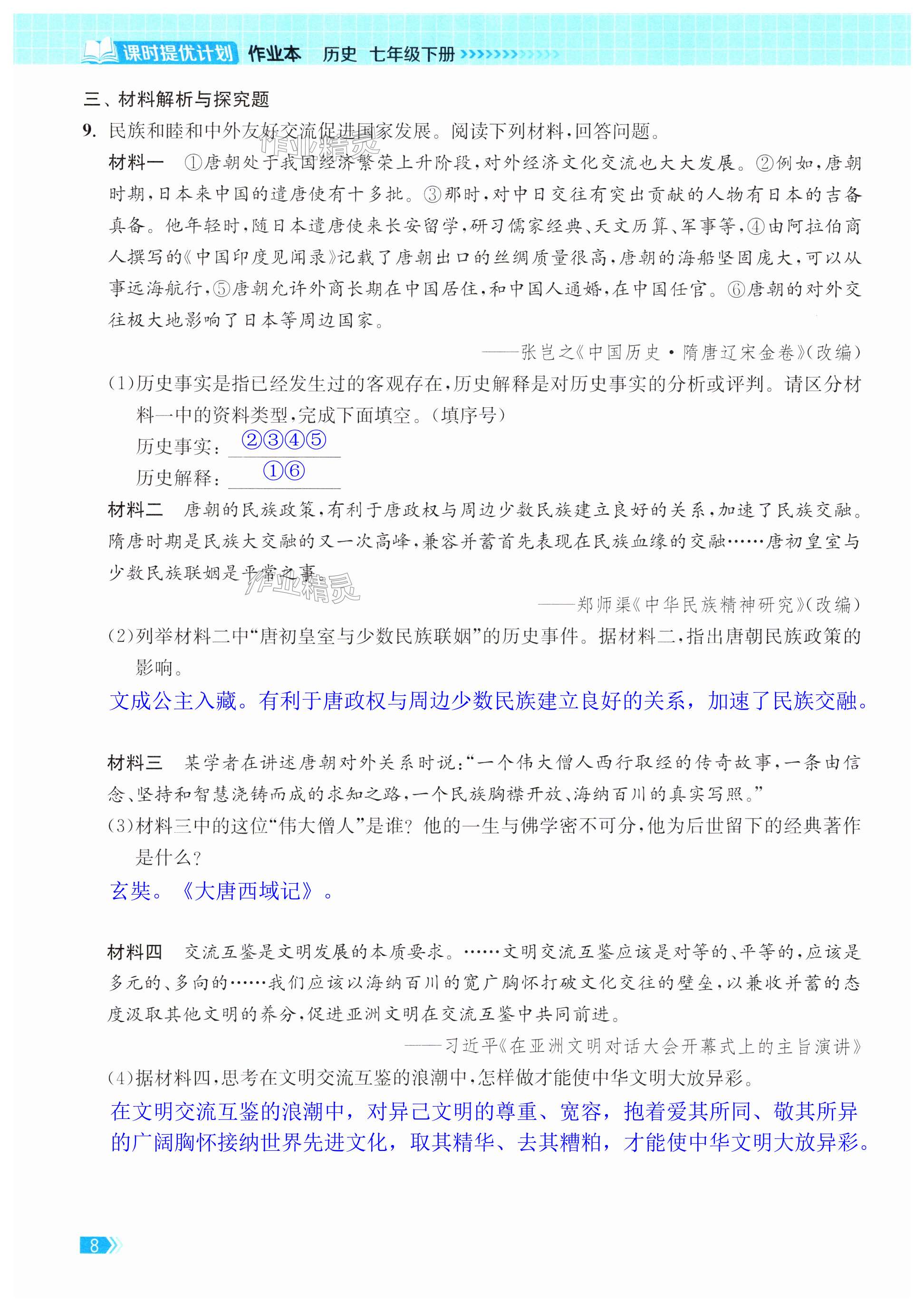 注:目前有些书本章节名称可能整理的还不是很完善,但都是按照顺序排列的,请同学们按照顺序仔细查找。练习册 2024年课时提优计划作业本七年级历史下册人教版 答案主要是用来给同学们做完题方便对答案用的,请勿直接抄袭。