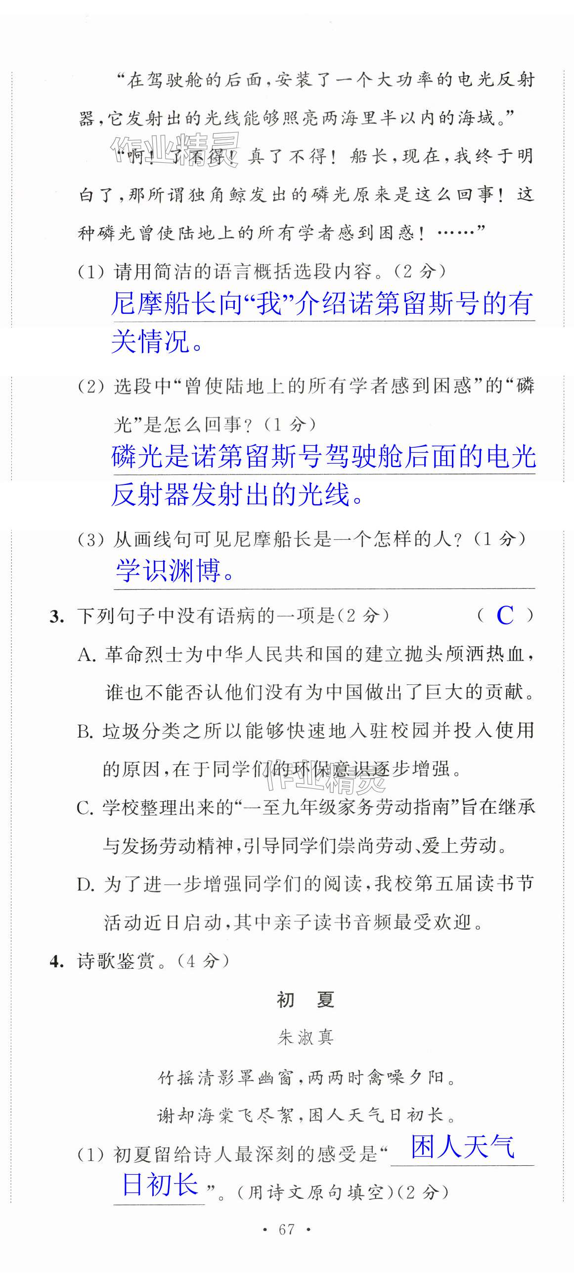 注:目前有些书本章节名称可能整理的还不是很完善,但都是按照顺序排列的,请同学们按照顺序仔细查找。练习册 2024年多维互动提优课堂七年级语文下册人教版提升版 答案主要是用来给同学们做完题方便对答案用的,请勿直接抄袭。