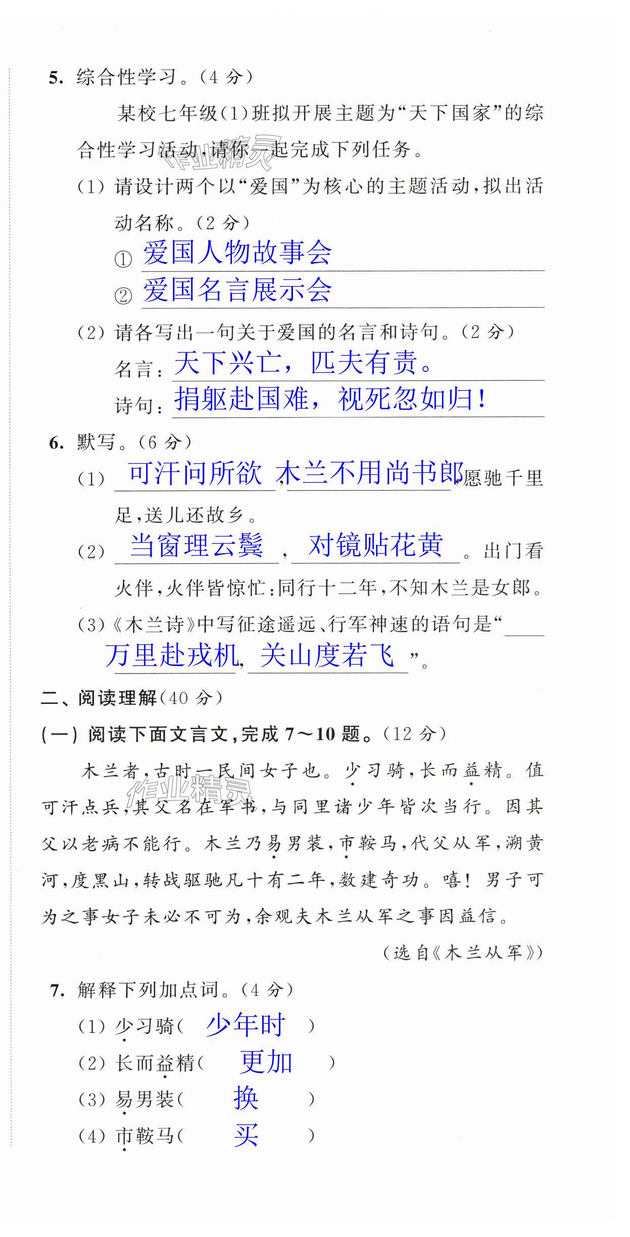 注:目前有些书本章节名称可能整理的还不是很完善,但都是按照顺序排列的,请同学们按照顺序仔细查找。练习册 2024年多维互动提优课堂七年级语文下册人教版提升版 答案主要是用来给同学们做完题方便对答案用的,请勿直接抄袭。