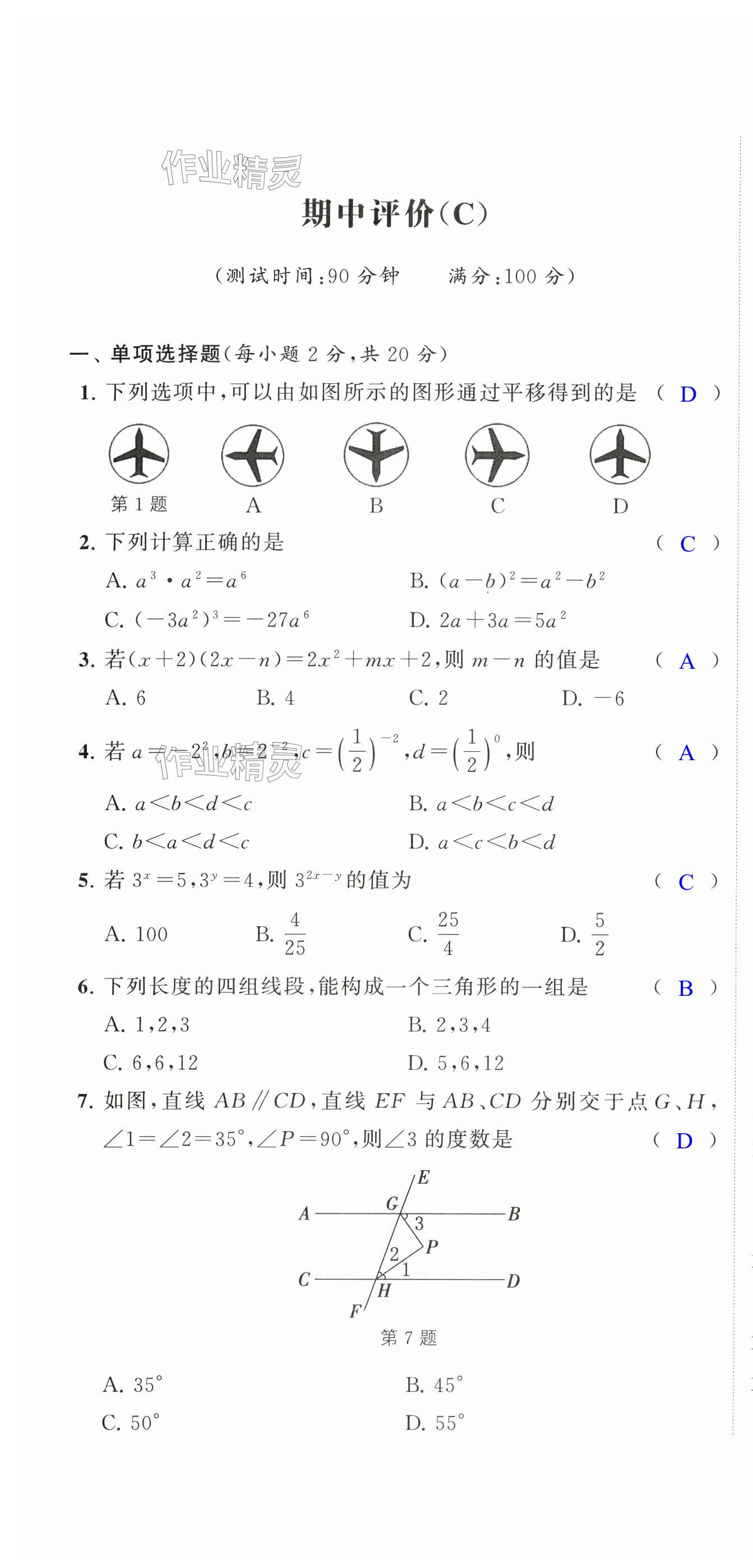 注:目前有些书本章节名称可能整理的还不是很完善,但都是按照顺序排列的,请同学们按照顺序仔细查找。练习册 2024年多维互动提优课堂七年级数学下册苏科版提升版 答案主要是用来给同学们做完题方便对答案用的,请勿直接抄袭。
