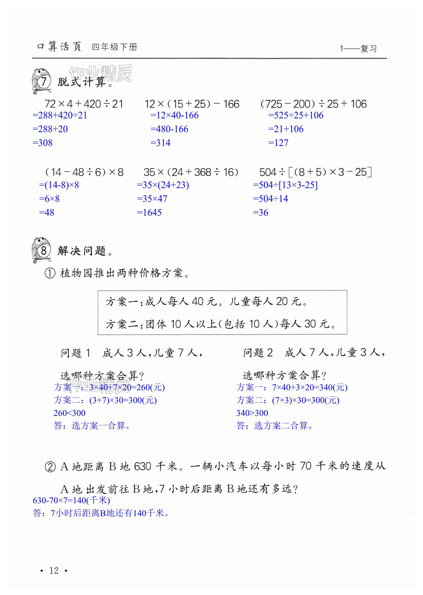 注:目前有些书本章节名称可能整理的还不是很完善,但都是按照顺序排列的,请同学们按照顺序仔细查找。练习册 2024年口算活页四年级数学下册人教版 答案主要是用来给同学们做完题方便对答案用的,请勿直接抄袭。