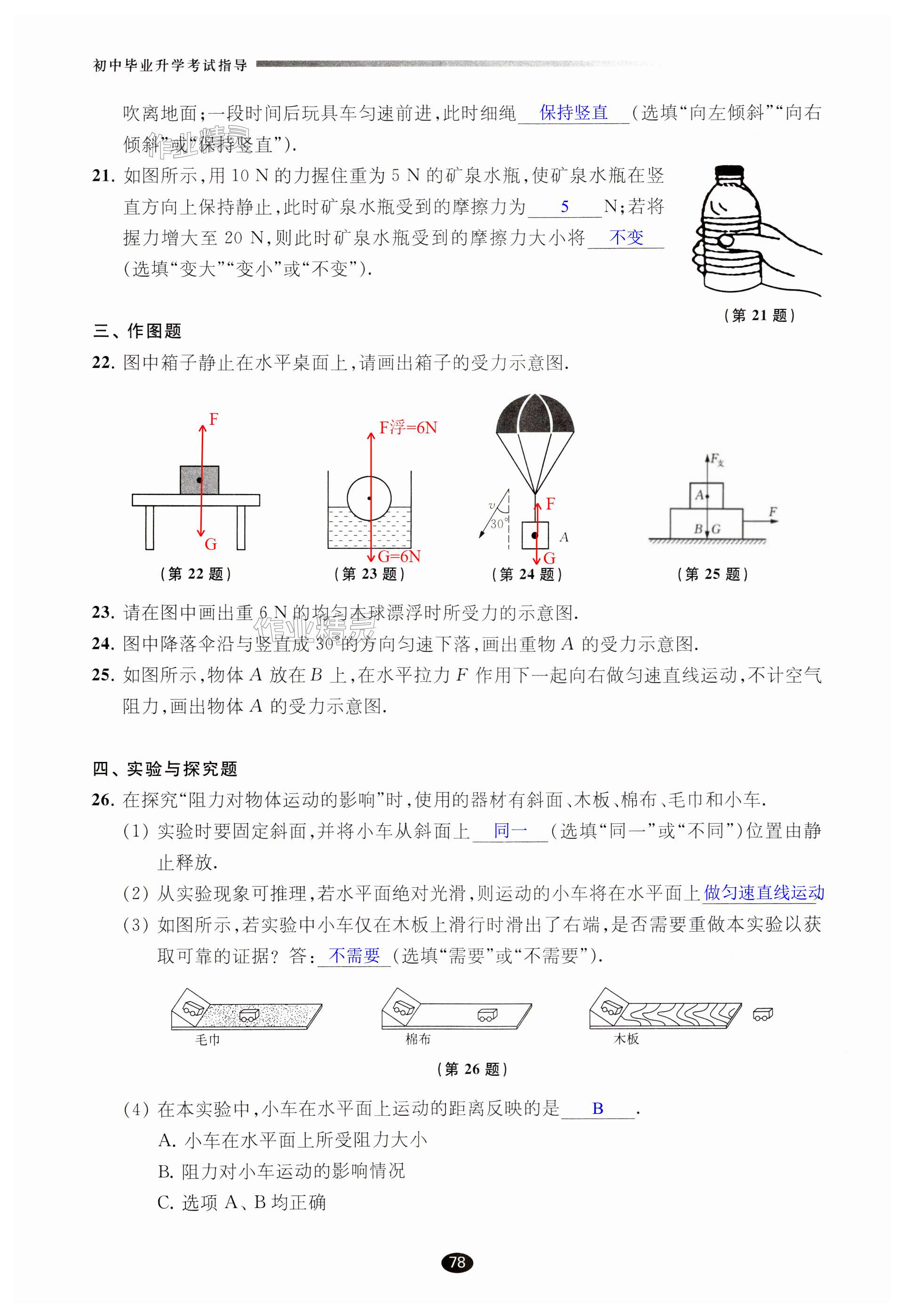 注:目前有些书本章节名称可能整理的还不是很完善,但都是按照顺序排列的,请同学们按照顺序仔细查找。练习册 2024年初中毕业升学考试指导物理 答案主要是用来给同学们做完题方便对答案用的,请勿直接抄袭。