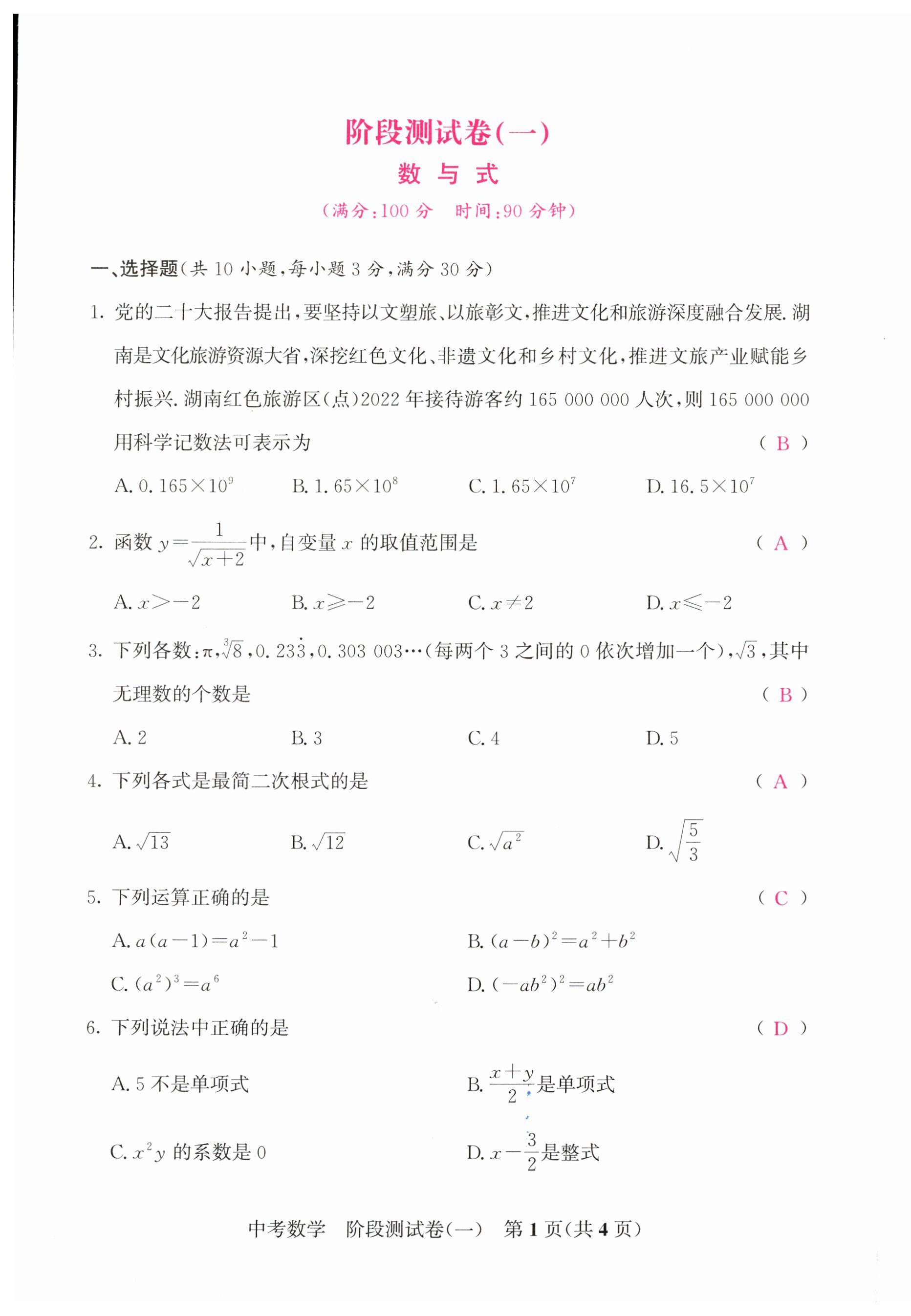 注:目前有些书本章节名称可能整理的还不是很完善,但都是按照顺序排列的,请同学们按照顺序仔细查找。练习册 2024年中考启航数学湖南专版 答案主要是用来给同学们做完题方便对答案用的,请勿直接抄袭。