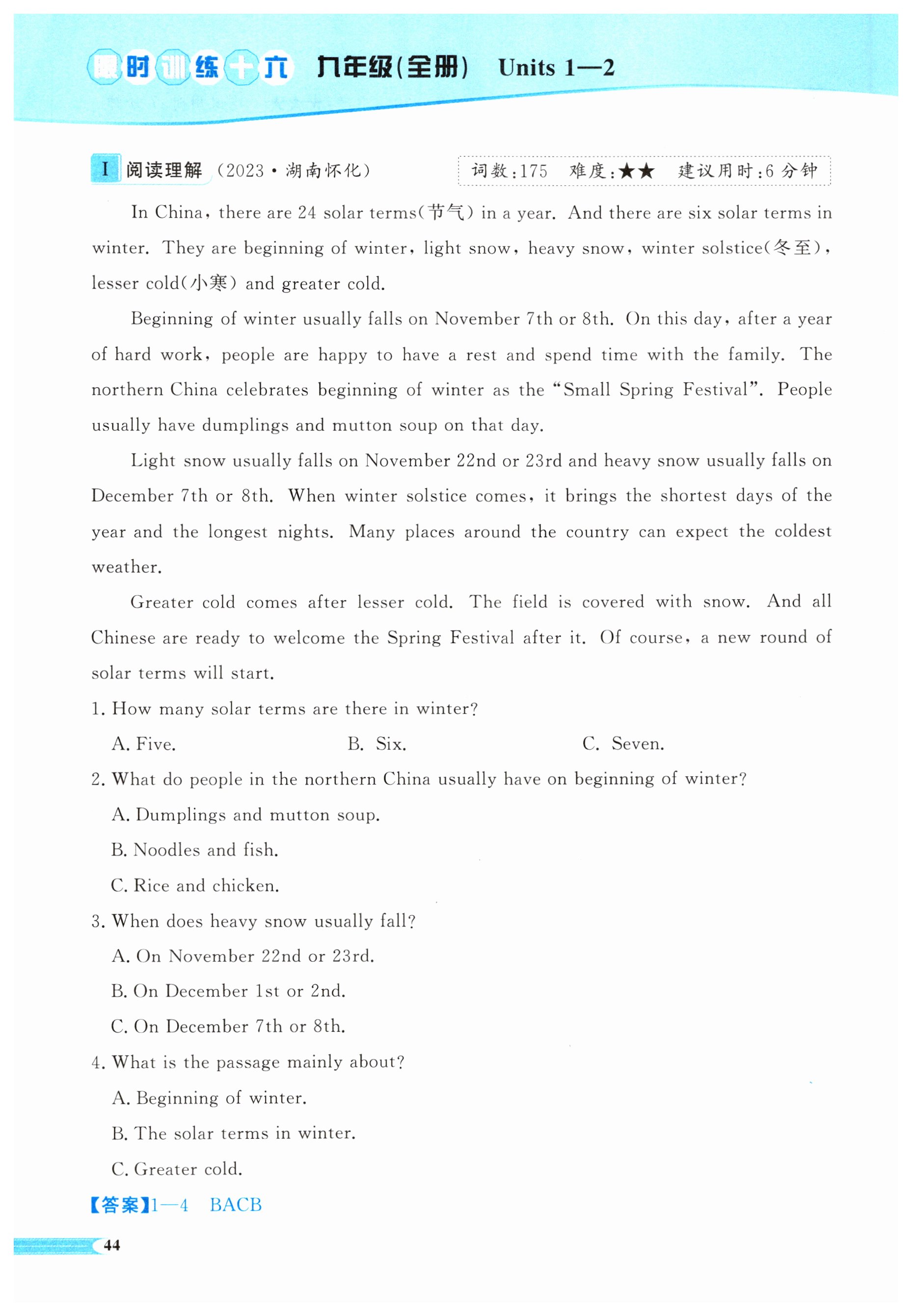 注:目前有些书本章节名称可能整理的还不是很完善,但都是按照顺序排列的,请同学们按照顺序仔细查找。练习册 2024年中考启航英语湖南专版 答案主要是用来给同学们做完题方便对答案用的,请勿直接抄袭。