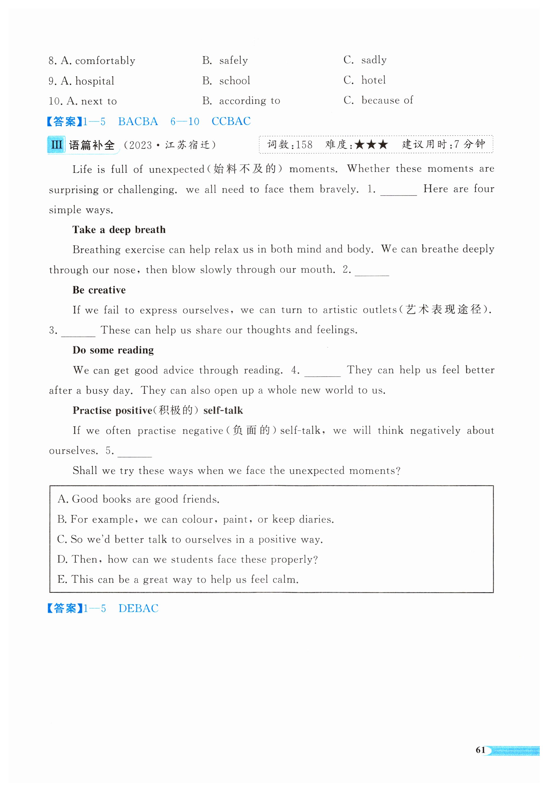 注:目前有些书本章节名称可能整理的还不是很完善,但都是按照顺序排列的,请同学们按照顺序仔细查找。练习册 2024年中考启航英语湖南专版 答案主要是用来给同学们做完题方便对答案用的,请勿直接抄袭。