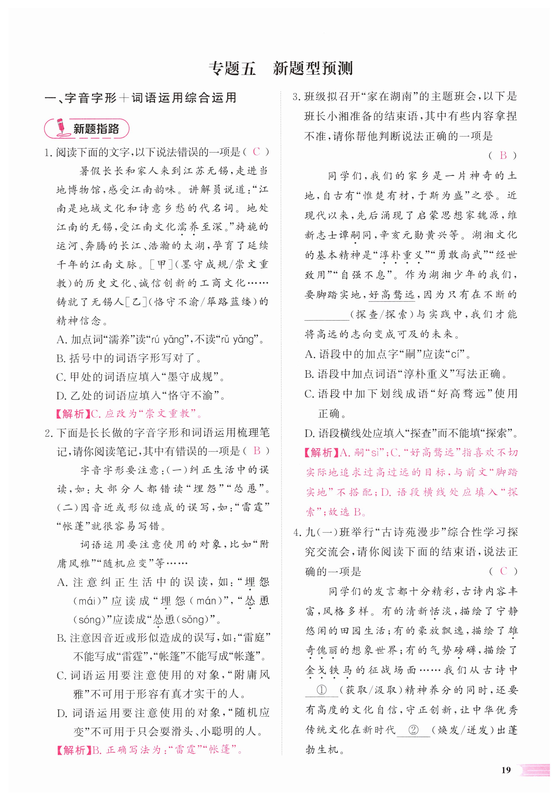 注:目前有些书本章节名称可能整理的还不是很完善,但都是按照顺序排列的,请同学们按照顺序仔细查找。练习册 2024年中考启航语文湖南专版 答案主要是用来给同学们做完题方便对答案用的,请勿直接抄袭。